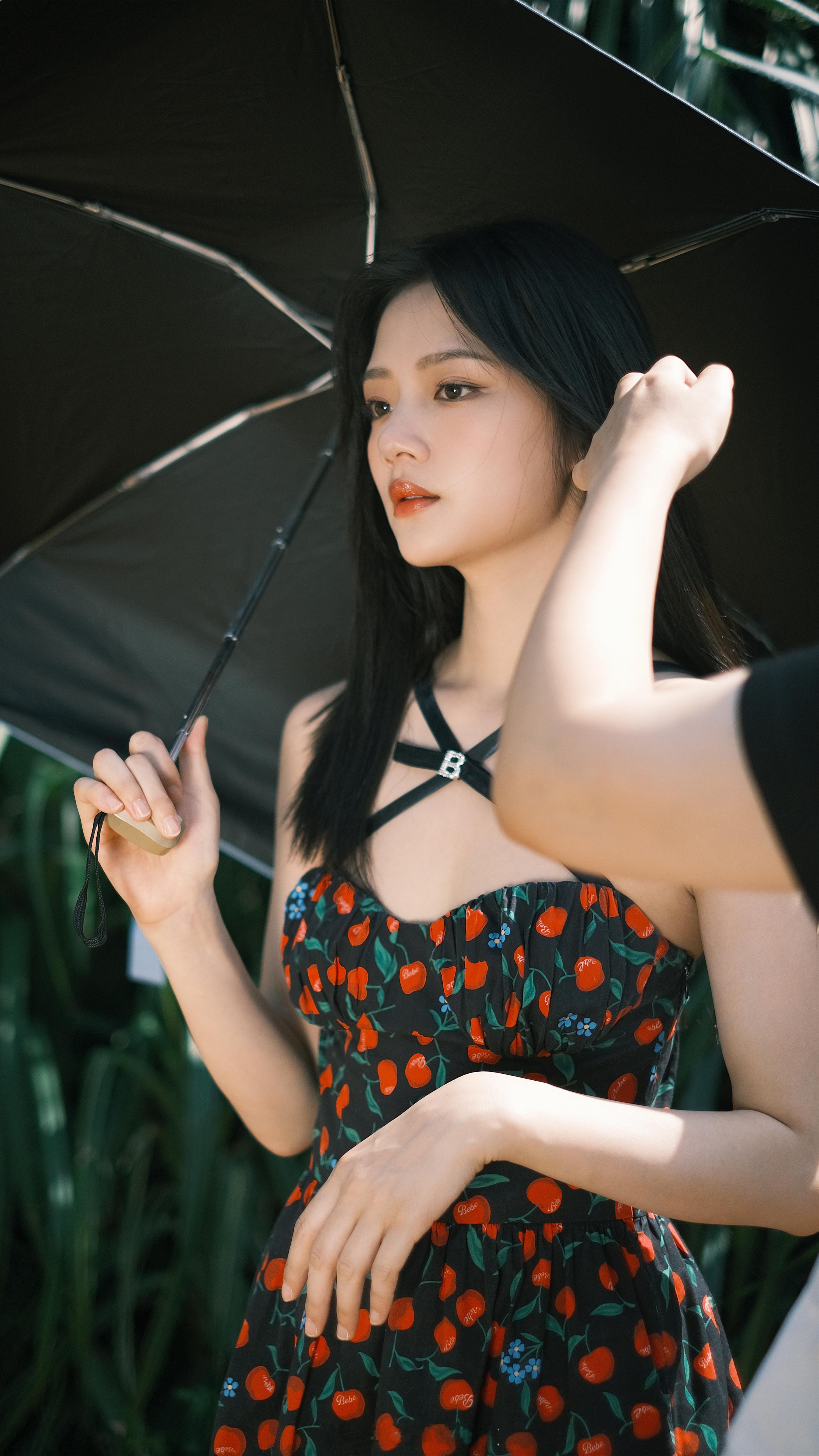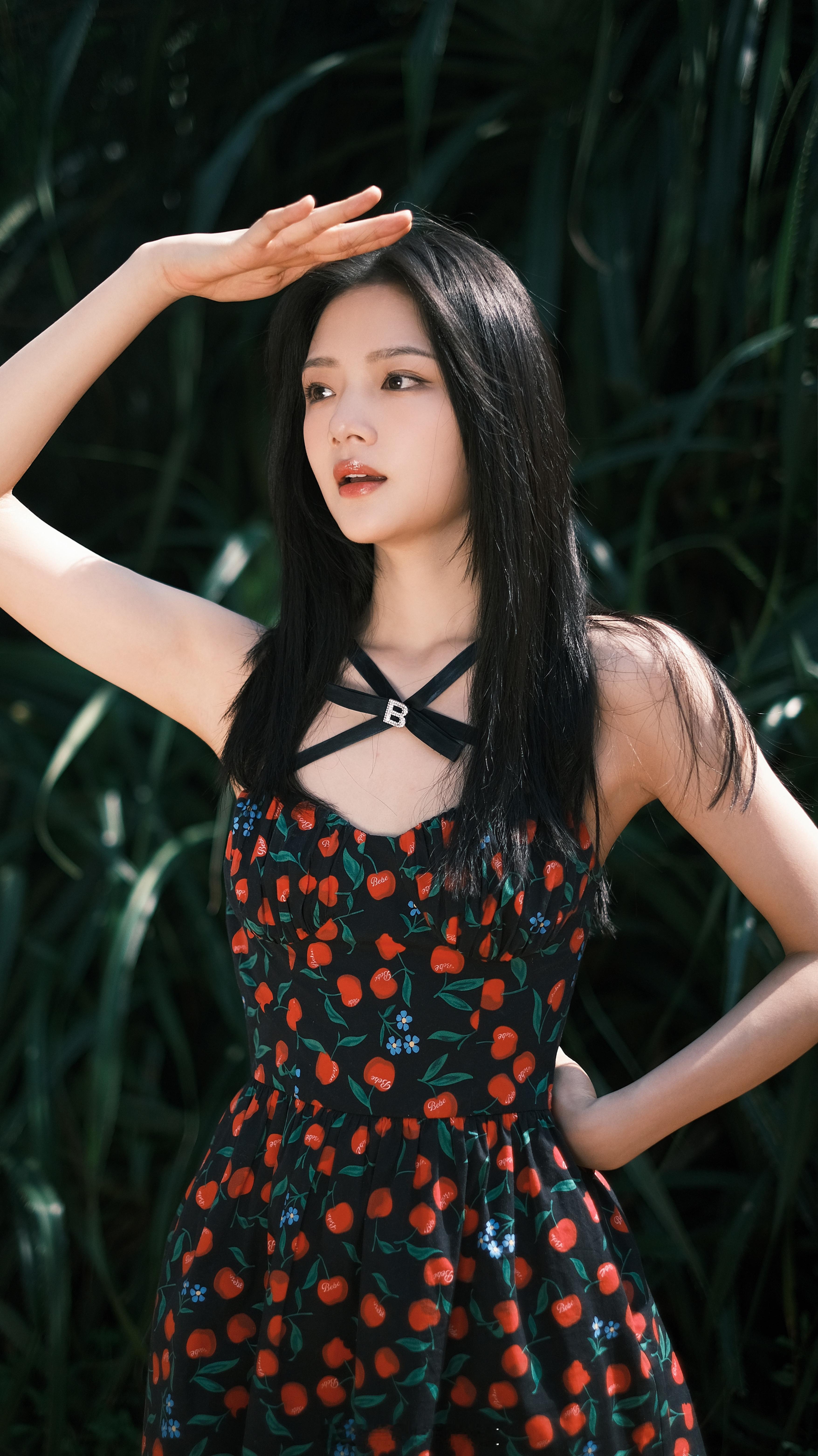 任敏樱桃碎花裙写真