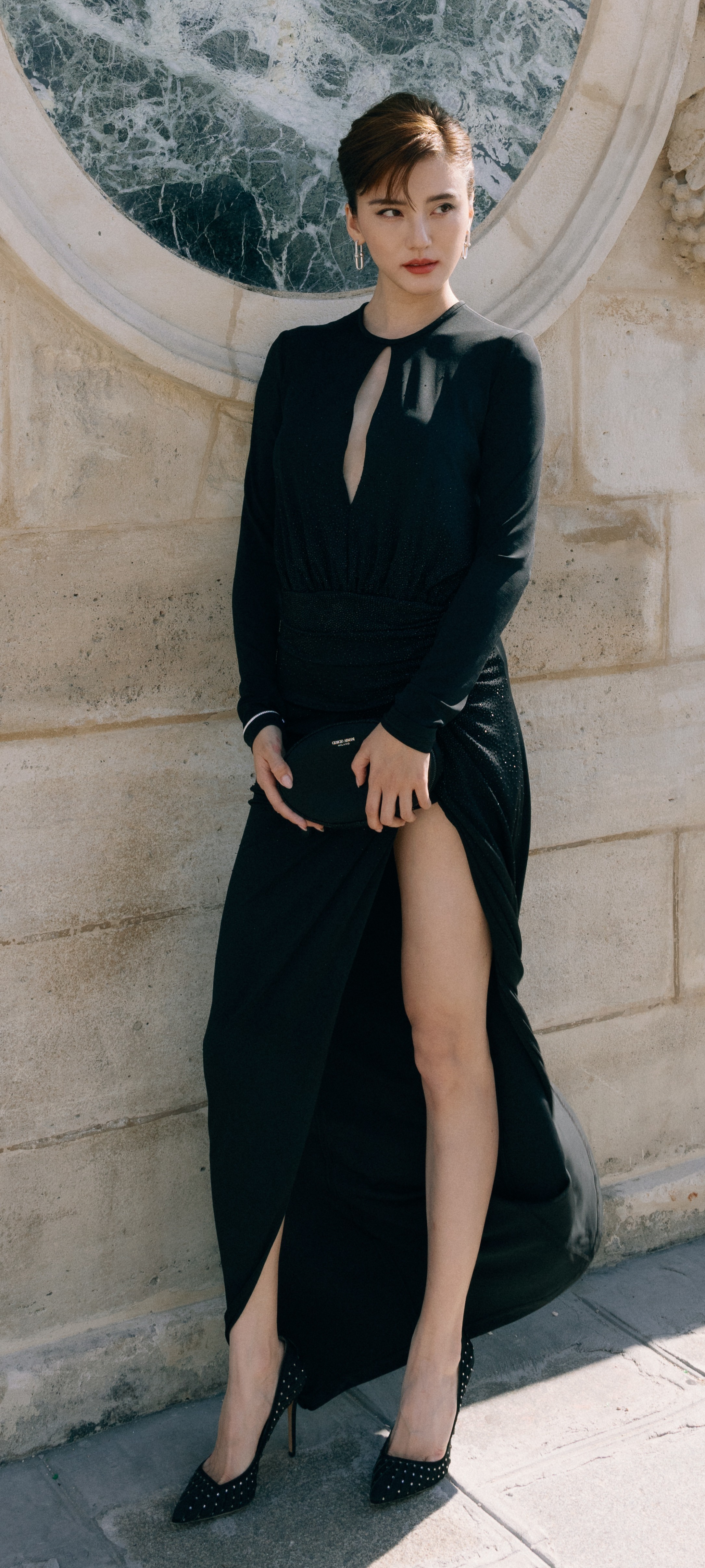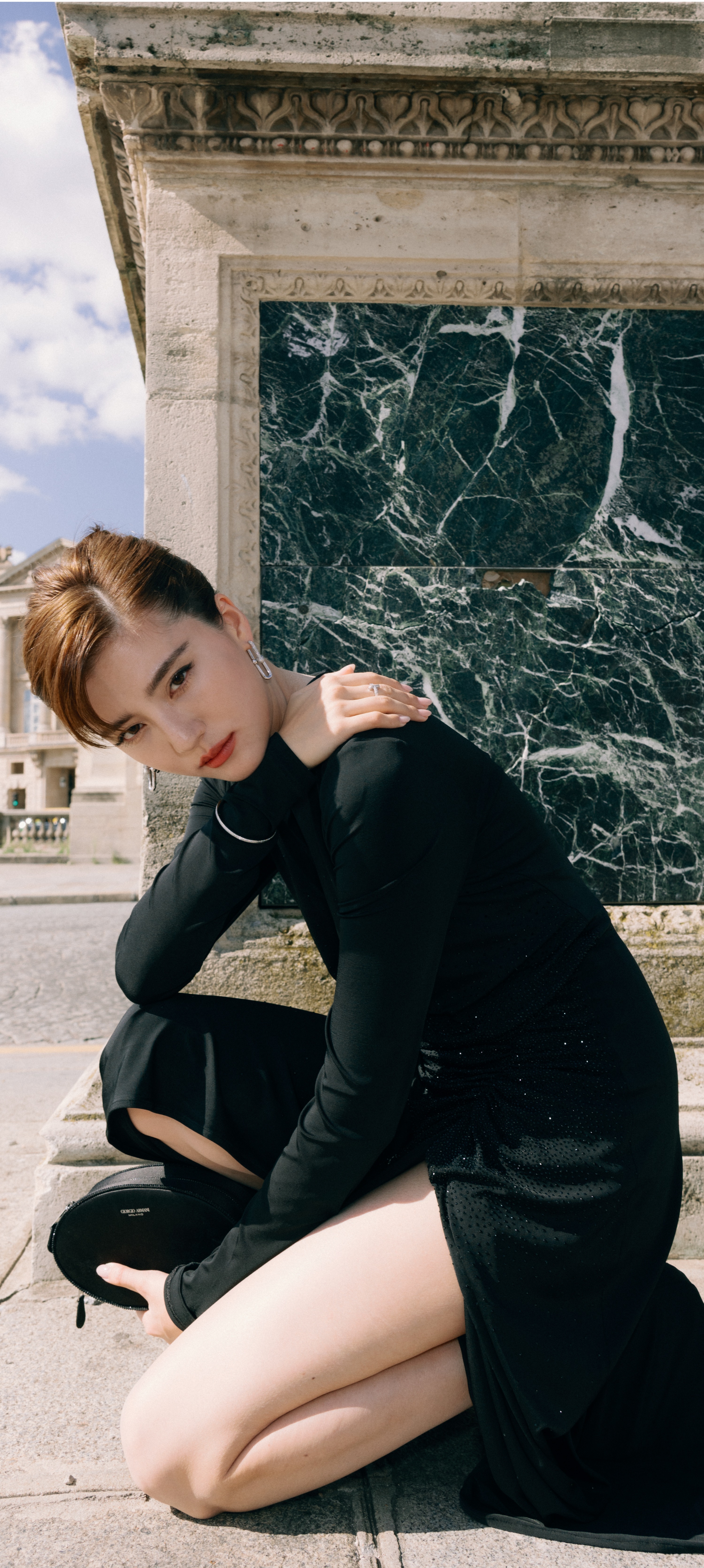 吴千语写真壁纸,黑色风格,浪漫优雅的大长腿穿搭美学。吴千语