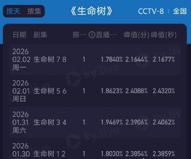 《生命树》热度破8500! 《生命树》的热度涨到8500了,但是收视率越来越低了