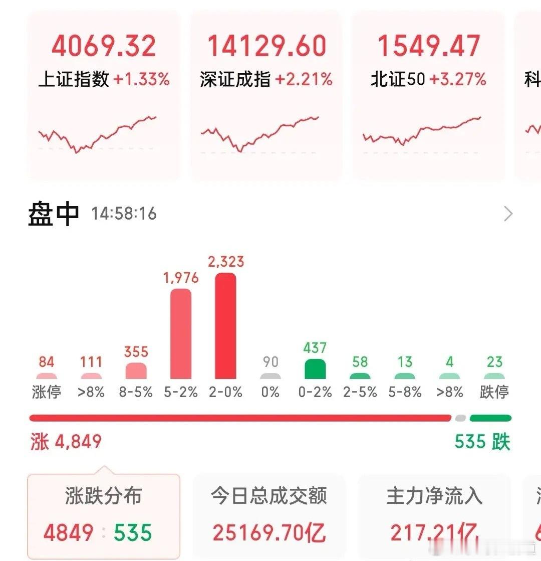 全线大涨!昨天普跌之后今天普涨领涨方向为太空光伏商业航天!半导体昨天大跌6个点今天温和反弹!尾盘抢筹的是Ai应用以及商业航天概念!机器人小涨,白酒小幅调整,贵金属终于迎来渗水反弹!