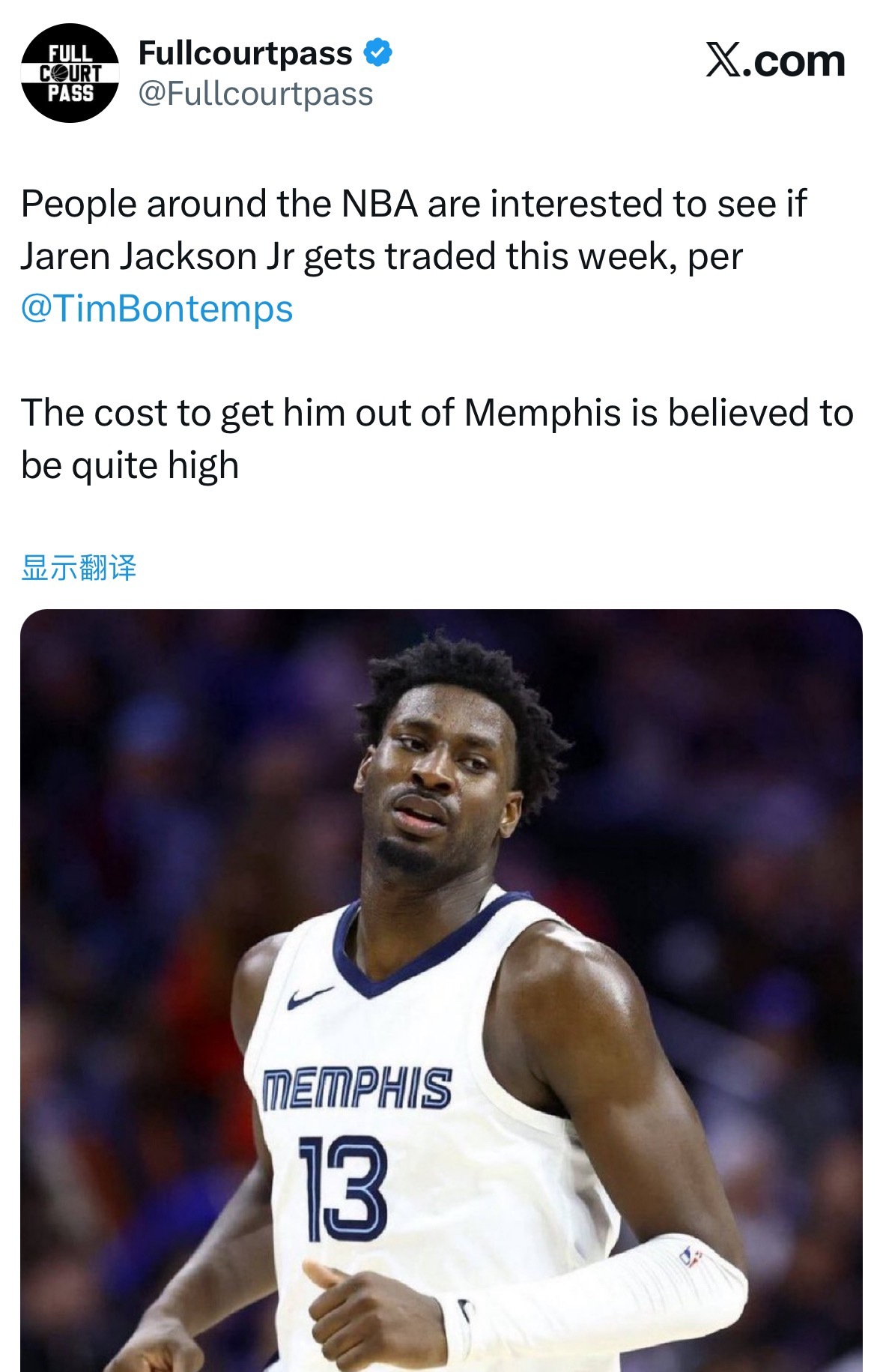 ESPN记者Tim Bontemps:NBA圈内人士都很关注贾伦-杰克逊本周是否会被交易。据信,把他从孟菲斯弄出来的代价相当高昂。
