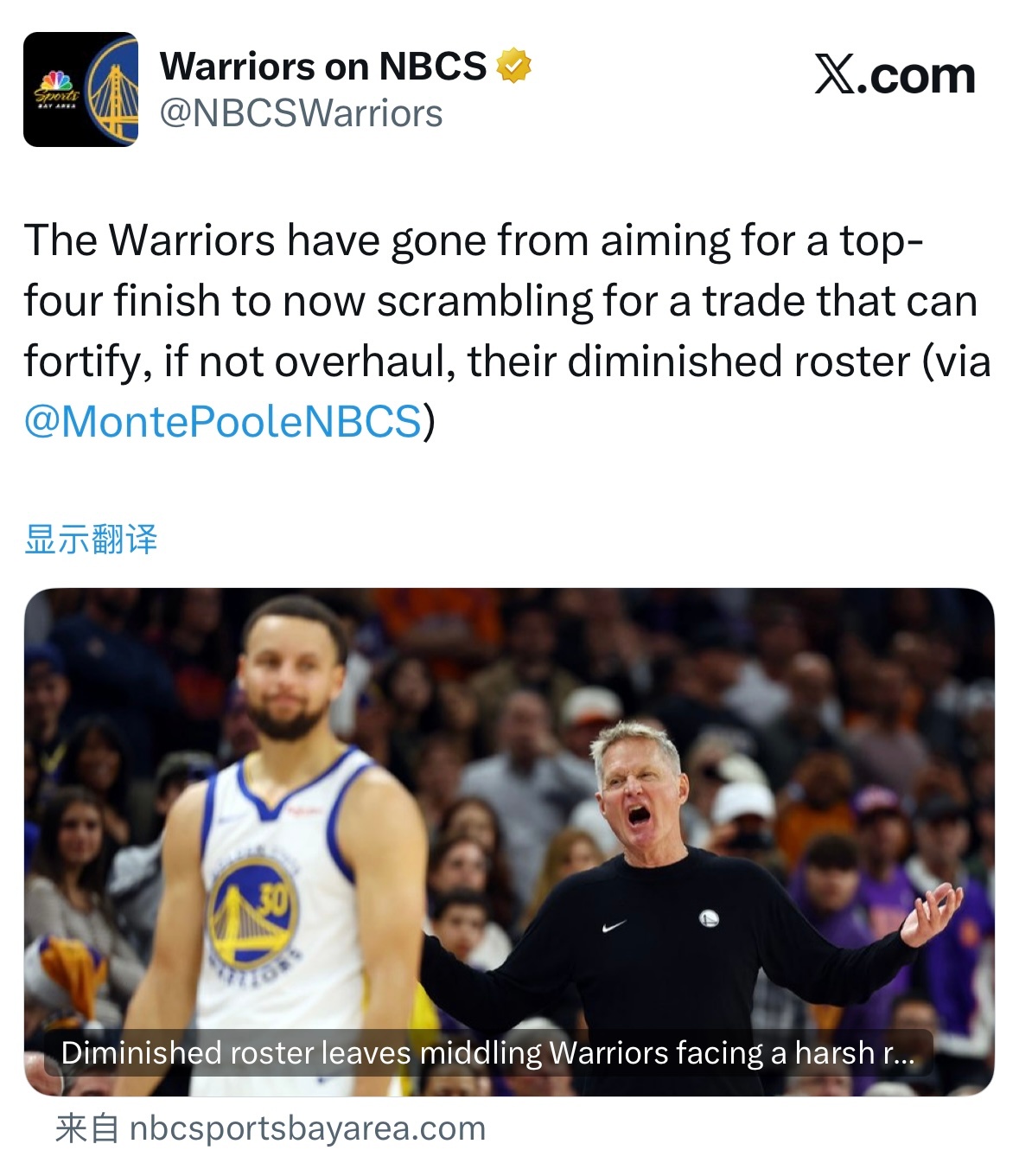 原本目标是冲击西部前四,最差也要锁定前六,再在季后赛走得更远,如今却不得不紧急寻求交易,哪怕无法彻底重建阵容,也要尽力补强已显单薄的轮换。