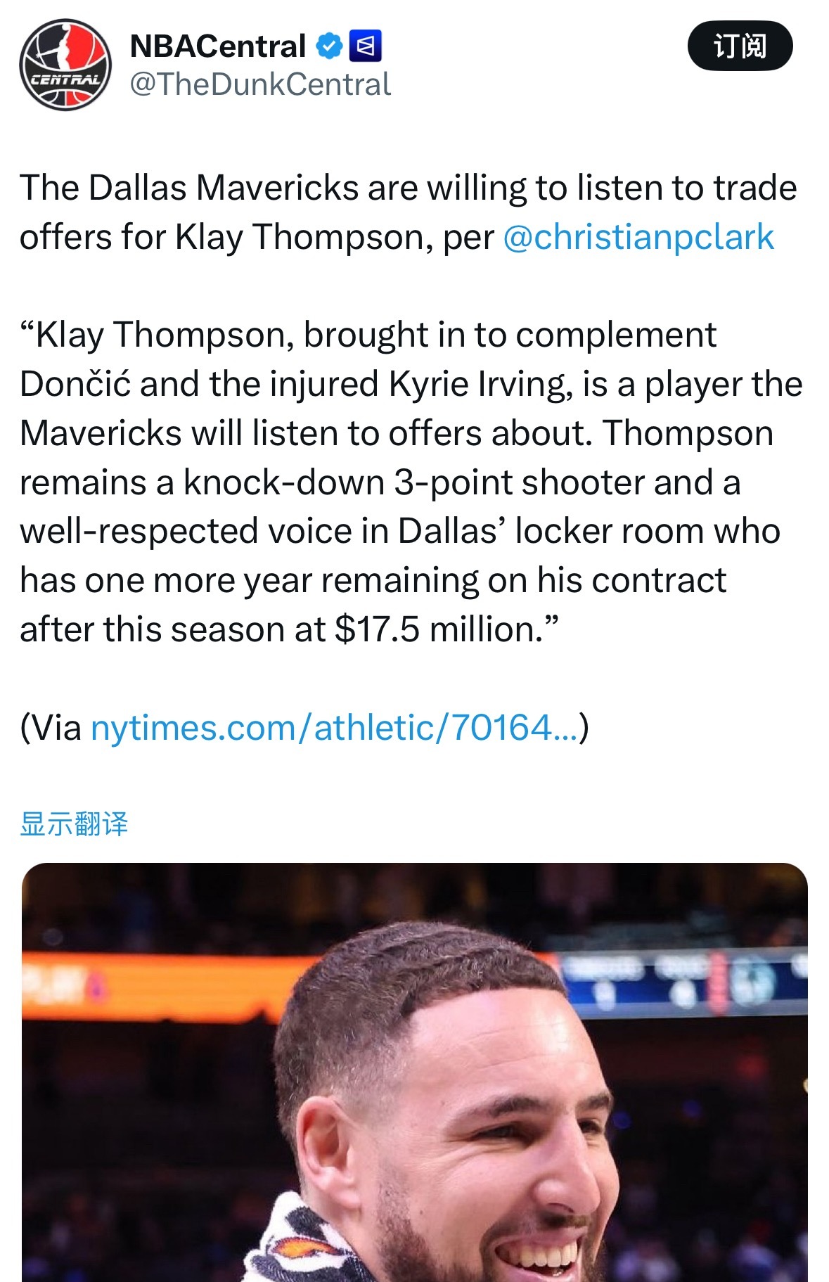 克莱当初加盟是为辅助东契奇及彼时伤缺的欧文,如今独行侠愿为其倾听报价。