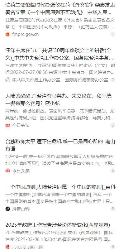 台湾国民党为何反对一国两制?国民党认为一国两制统一台湾,台湾就成为地方政府,也就是中国的一个省,自己被降级了,而且其在政治上和行政上都会被矮化。 麻烦看官老爷们右上角点击一下“关注”,既方便您进行讨论和分享,又能给您带来不一样的参与感,感谢您的支持! 台湾国民党始终对一国两制持反对态度,核心原因就是他们觉得一旦按这个方案实现统一,台湾就成了中国的一个省,自己的政治地位会被降级,在政治和行政层面也会被矮化,这种认知本质上是对两岸关系定位的根本偏差。 国民党内部如今的主流思路还是维持两岸现状,既不愿推进统一,也不敢明着附和台独,这种摇摆态度让其两岸政策始终没有明确方向。还有部分党内势力刻意误读一国两制里的高度自治,觉得这会限制自身的政治空间,却不愿正视核心前提。 更重要的是,国民党还受着曾为全国执政党的历史心理惯性影响,始终摆不正自己的位置,不愿承认台湾自古就是中国领土,如今更是中国省级行政区的核心事实,这也是其反对一国两制的重要思想根源。 从经济现实来看,台湾的发展早就和大陆深度绑定,海关总署公布的 2024 年两岸贸易额为 2929.71 亿美元,大陆依旧是台湾最大贸易伙伴、最大出口市场和最大进口来源地,台湾的众多产业都依赖大陆的超大市场生存。 可即便背靠大陆市场的红利,国民党却因为岛内复杂的政治生态,在两岸政策上反复摇摆。一边想靠着两岸经贸合作捞取经济利益,一边又怕被岛内独派势力攻击,不敢明确坚持一个中国原则,始终在两岸议题上含糊其辞。 这种摇摆的态度也让国民党渐渐脱离台湾主流民意,台湾竞争力论坛 2025 年 1 月发布的民调显示,68.2% 的台湾民众最关心的还是民生经济相关议题,只有 17.5% 的民众关注两岸政治纷争,大家更希望看到实实在在的发展红利。 但国民党却为了迎合岛内部分政治势力,刻意回避国家统一的相关主张,既不敢谈统一,也拿不出能改善台湾民生的有效办法,这不仅让其遭到大陆的反对,也让台湾民众对其越来越失望,质疑声不断高涨。 反观大陆,始终坚定坚持一个中国原则和九二共识,这也是两岸关系和平发展的政治基础。九二共识的核心意涵就是海峡两岸同属一个中国,共同努力谋求国家统一,这一事实有明确的文件和文字记录,不容歪曲和否定。 大陆始终反对任何形式的台独,也反对一切模糊两岸主权隶属关系的主张,对于一直宣称坚持九二共识的国民党,大陆也明确提出要求,希望其正视中央与地方的定位,摒弃含糊其辞的模糊化表述,真正融入国家统一大局。 如今的两岸关系,早已是经济上深度融合、文化上密切交流的状态,台商在大陆的投资不仅让台企收获了发展机遇,也推动了大陆相关产业的进步,实现了两岸的合作共赢,这样的发展成果是有目共睹的。 文化交流上,两岸同胞的往来越来越频繁,从青年交流到民俗文化互通,各类交流活动让两岸同胞的心贴得更近,民族认同感也在不断增强,越来越多的台湾同胞意识到,两岸同文同种、同根同源,本就是一家人。 在国际社会上,一个中国原则早已成为公认的国际关系基本准则,联合国第 2758 号决议更是从法律和政治层面确认了这一原则,目前与中国建交的 183 个国家,都坚定承诺遵守一个中国原则,这一国际共识不容撼动。 大陆始终以最大的诚意、尽最大的努力争取和平统一的前景,也始终为和平统一创造广阔的空间,在一个中国原则的基础上,大陆愿意同台湾各党派、团体和人士开展对话沟通,探索符合台湾实际的一国两制台湾方案。 但和平统一的前提是坚定反对台独,任何分裂国家的行径,都会遭到全体中华儿女的坚决反对,也注定会失败。国民党如果始终抱着错误的认知,回避统一、摇摆不定,最终只会被历史潮流抛弃,失去两岸同胞的信任。 台湾的发展离不开大陆,这是客观的现实,也是两岸同胞共同的利益所在。国民党只有正视历史和现实,摒弃错误的政治执念,坚定坚持一个中国原则和九二共识,积极推动两岸关系和平发展,才是真正的出路,也才能对得起台湾民众的期待。