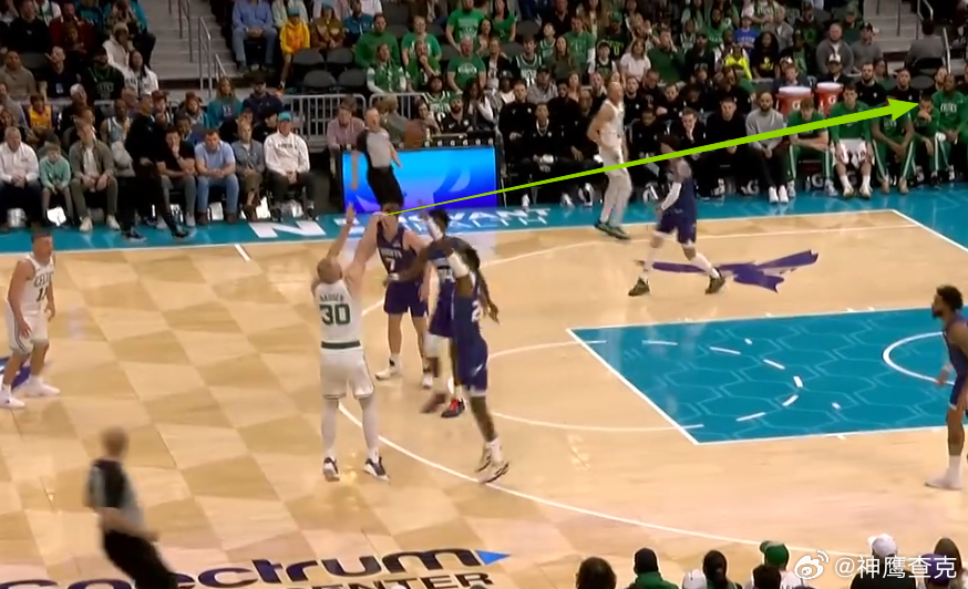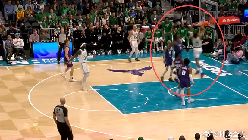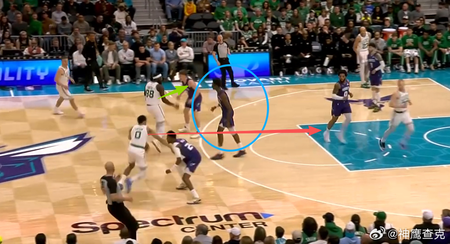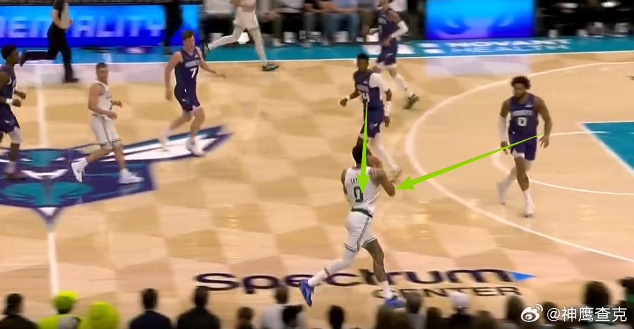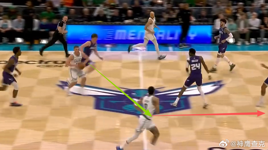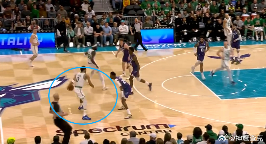 12345塔图姆持球刚过半场,立即抓早期进攻阶段、黄蜂阵地防守立足未稳启动单打:奎塔佯装为普理查德设置无球掩护吸引黄蜂防守注意力、将迪亚巴特调度在上线,与此同时塔图姆直接使用坠步启动左路突破直杀篮下,一步过掉米勒后行进间从迪亚巴特、米勒二人之间穿过,连过两人杀入篮下双手暴扣将球砸进篮筐。