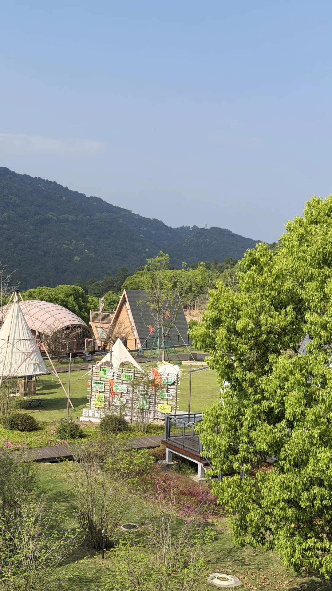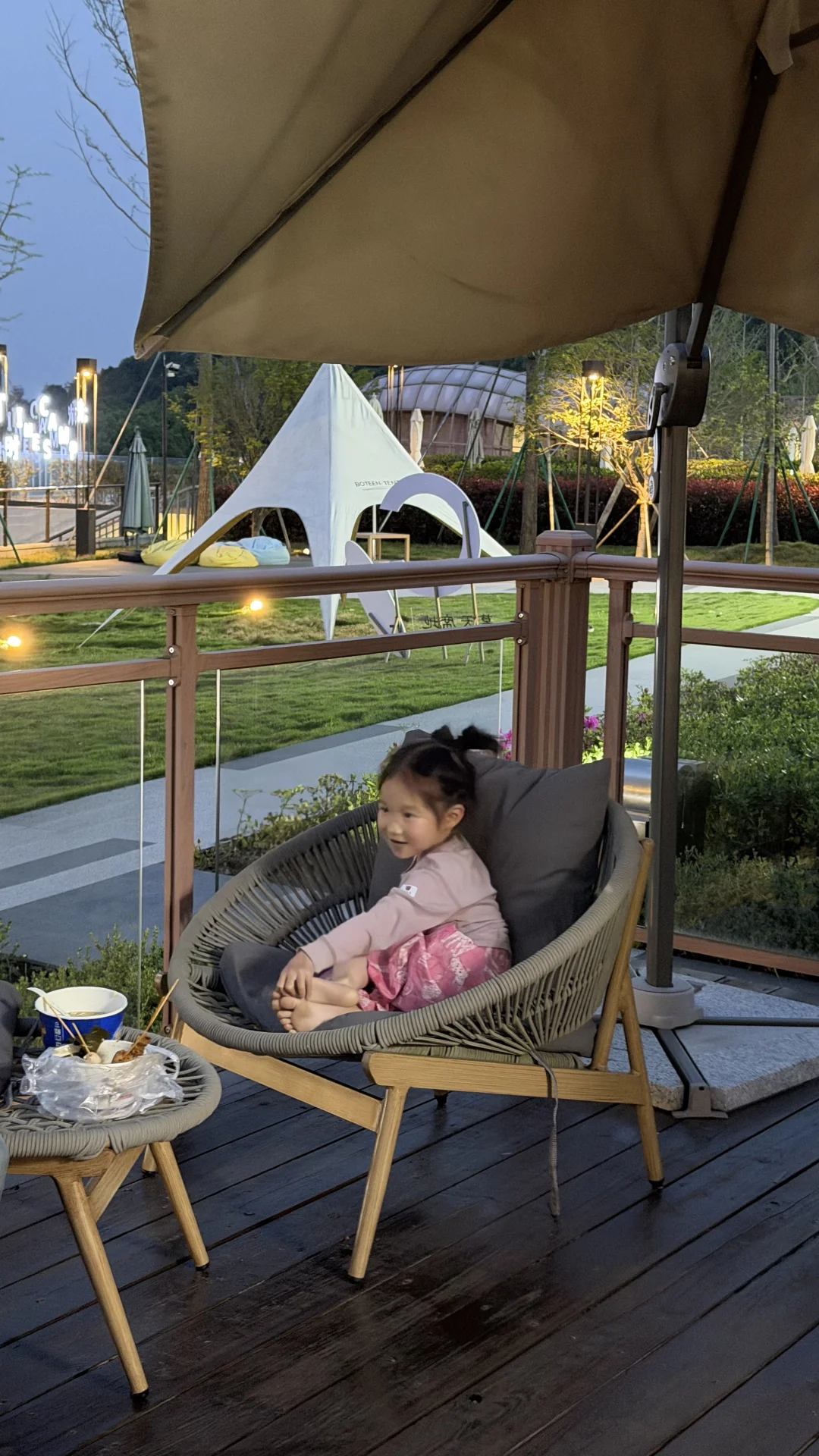 芯芯旅行日记:太姥山露云娜美时光营地 今天住进山里了。 木屋是芯芯喜欢的,也是我喜欢的风格。 窗外就是太姥山,空气清甜得像能洗肺。 晚上在房间门口摆上晚餐,天色慢慢暗下来, 蓝调时刻太美了——山影温柔,灯光温暖。 芯芯坐在旁边,跟我唠了好久好久 4岁的小话痨,说出来的每个字都是甜的。 心很满,时间很慢。 山里的夜晚,安静得只剩下幸福的声音。🌙