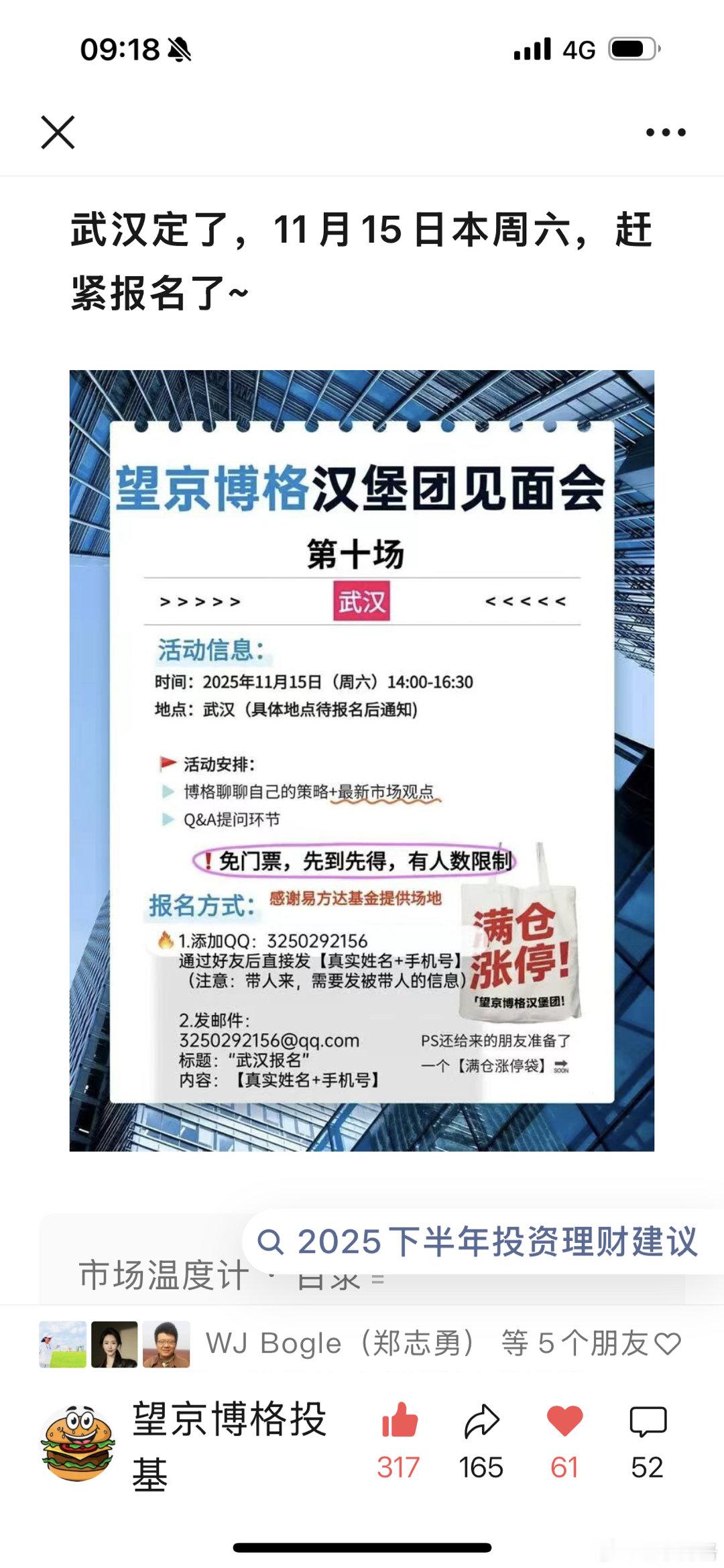 定了,本周六武汉,第十场明天发招募通知,公众号望京博格投基基金[超话]