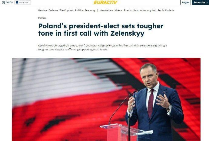 "友谊"终结:新任波兰总统纳夫罗茨基向泽连斯基重提波兰"历史宿怨" "我们当然