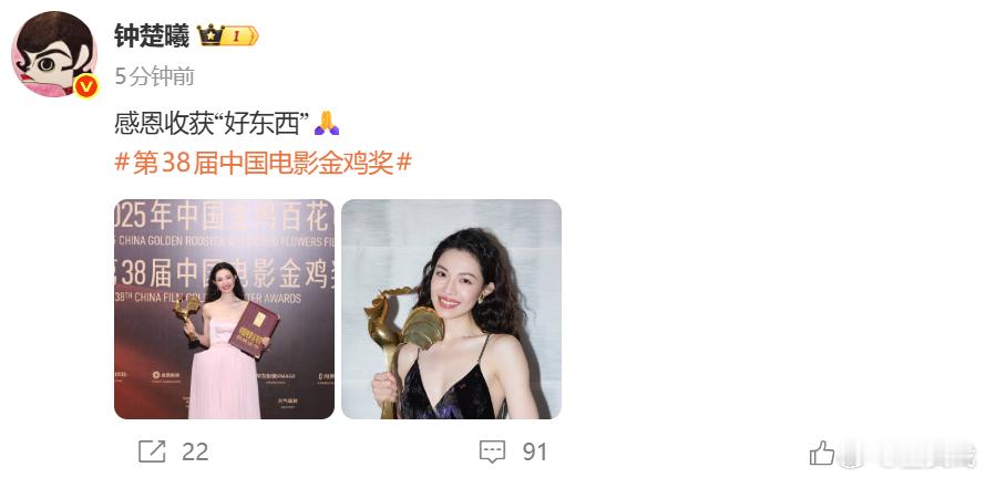 惠英红晒出金鸡奖照片,并配文“我一定会回来的”
