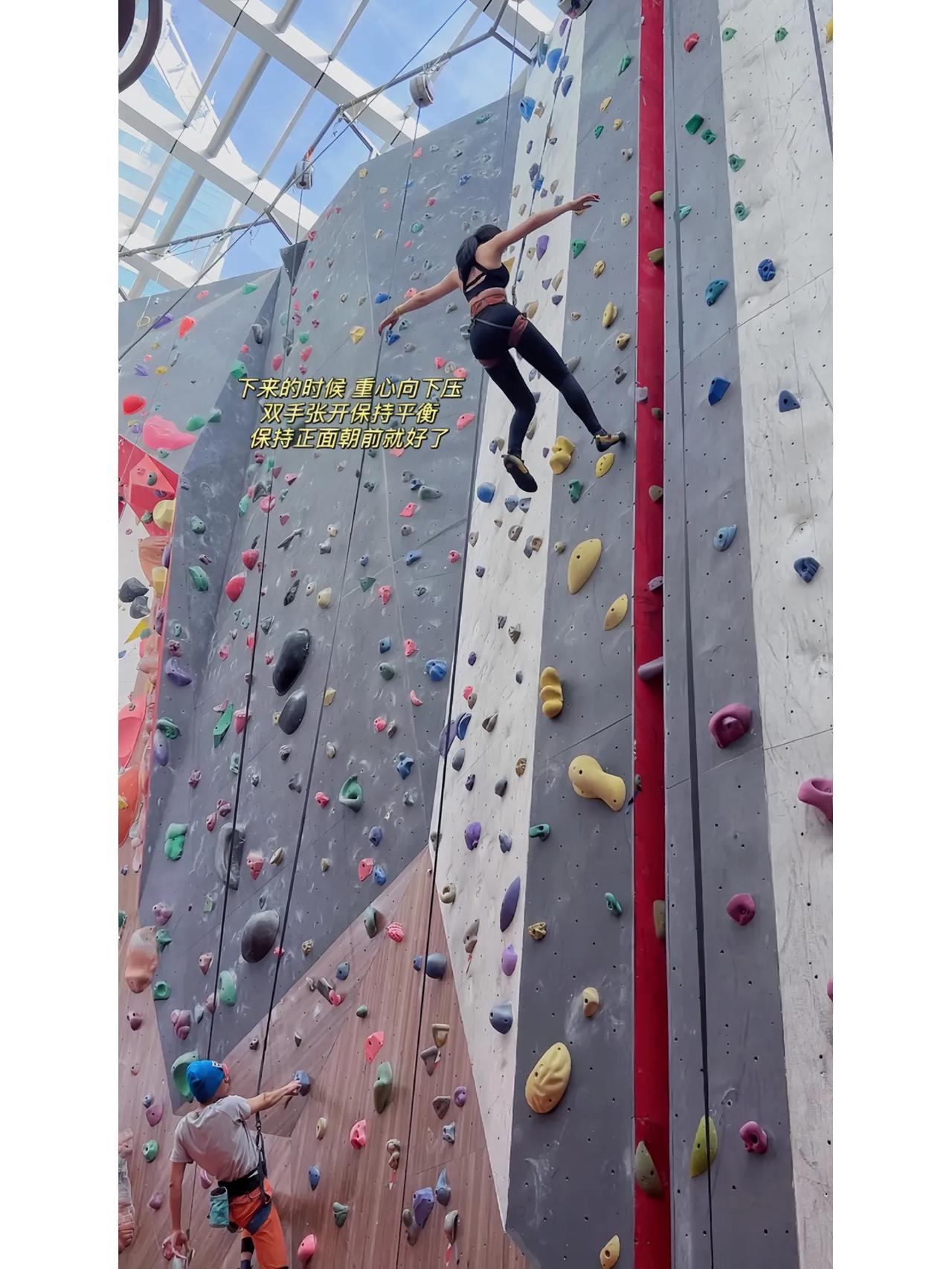 攀岩🧗真的是一项只要开始就会爱上的运动|||攀岩🧗你试过没? 想了很久很久的攀岩 终于来挑战了!!! 刚开始爬的时候还有点怕 熟悉了以后就感觉也还好 ⚠️一定不要往下看哦 攀到顶的时候重心向下 张开双手保持平衡 保持正面朝前就可以自然下落啦~ 虽然说平时有坚持健身锻炼 但是攀岩还是让我意识到了 自己的肌肉耐力有多弱🤣 第一次来还只能挑战到第4关 下次继续🐛 大家记得带点镁粉来 爬到后面手会出汗很滑 我来的这家店还蛮适合小白的 教练刚开始会教下动作 有时候遇到难点 也会用激光笔指导一下 比较适合新手~ 📍:魔岩攀登 🎫:135 🔖:要在小🍊预约