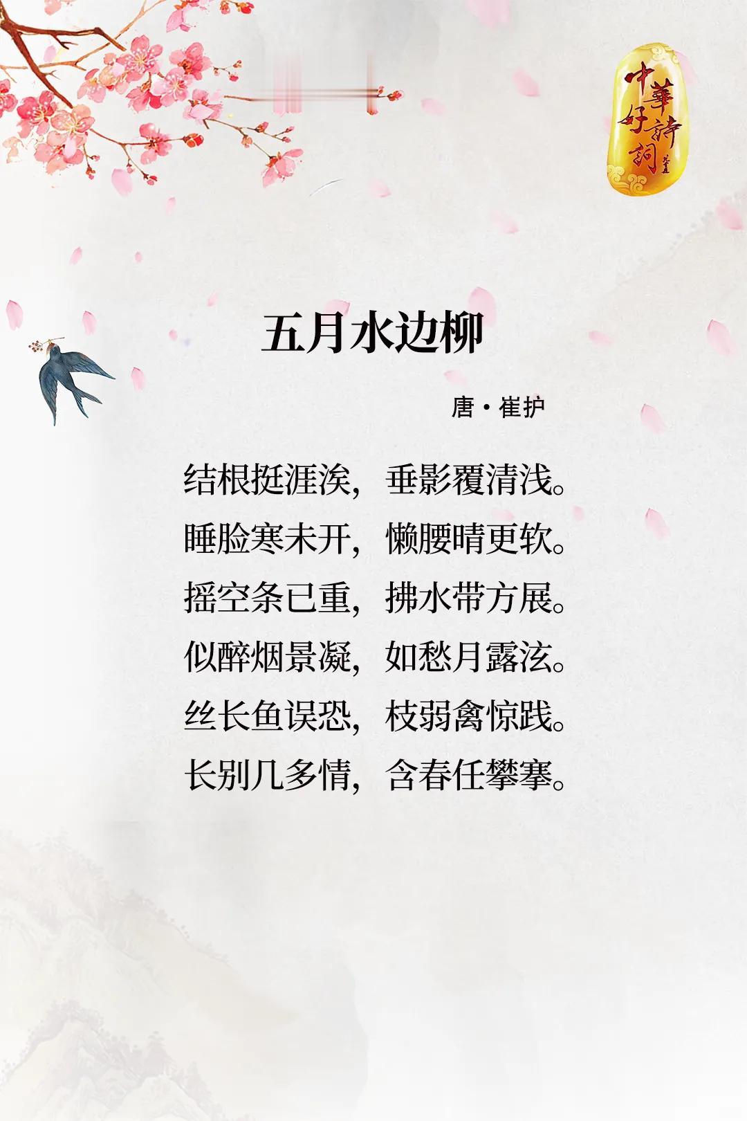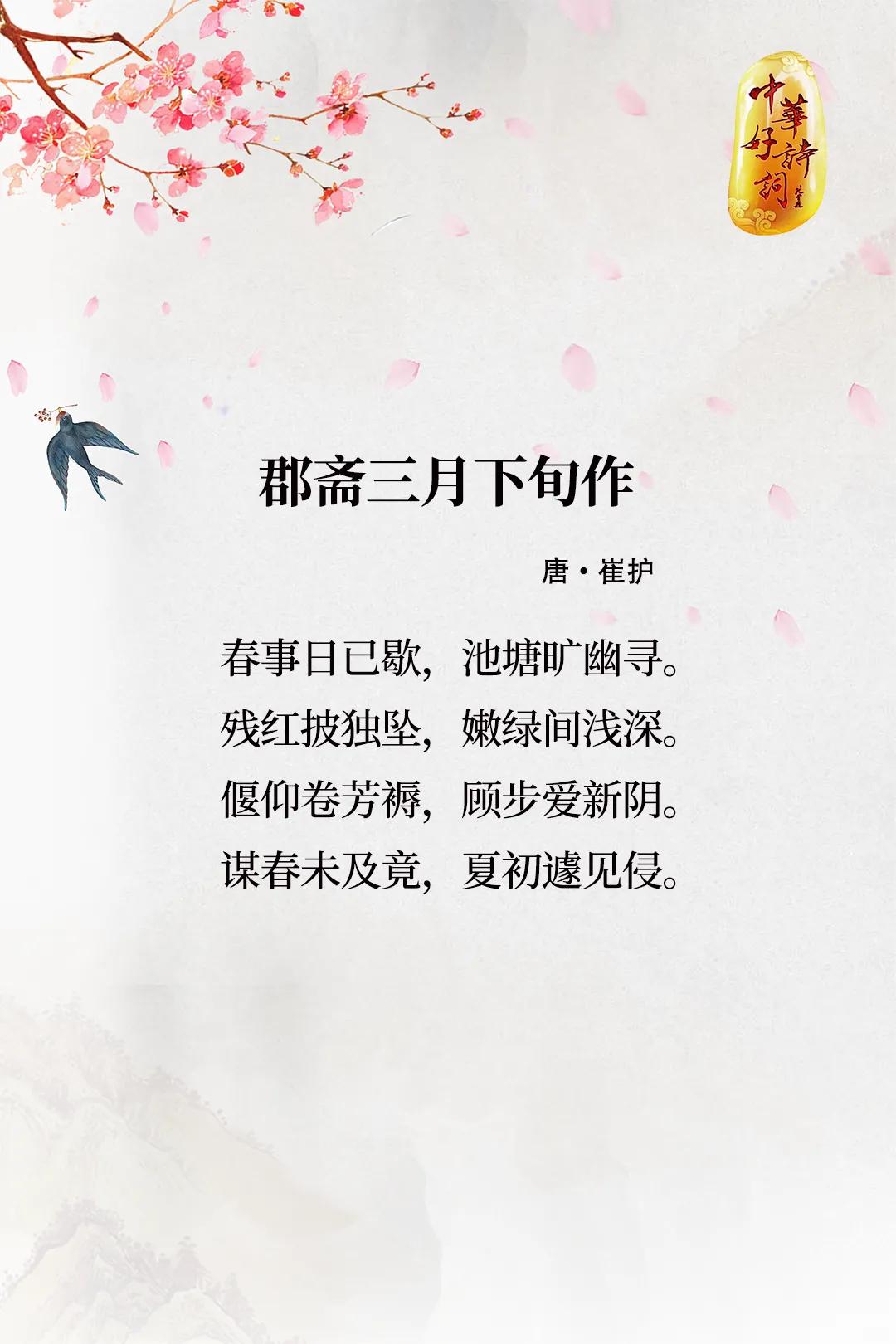 晚春》 海棠将坠红色浅, 有翠转黄落榆钱。 燕子不知春日晚, 犹还没飞我眼前!