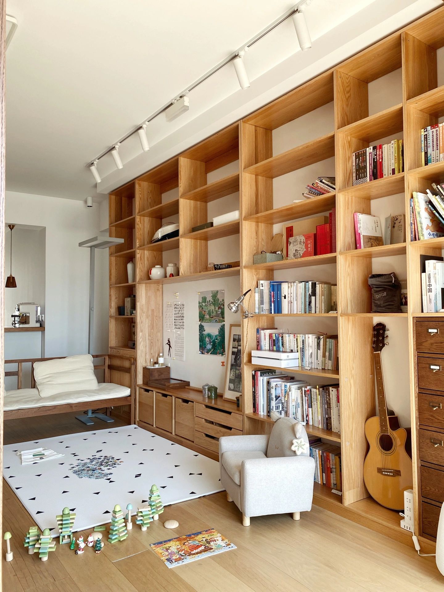 🌈🌈【定制了一整面不规则书架墙,比满墙书架更有层次感和趣味性】