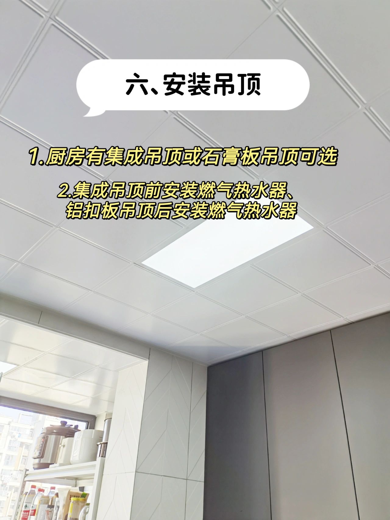 如果安装铝扣板吊顶,可先装吊顶后装热水器;