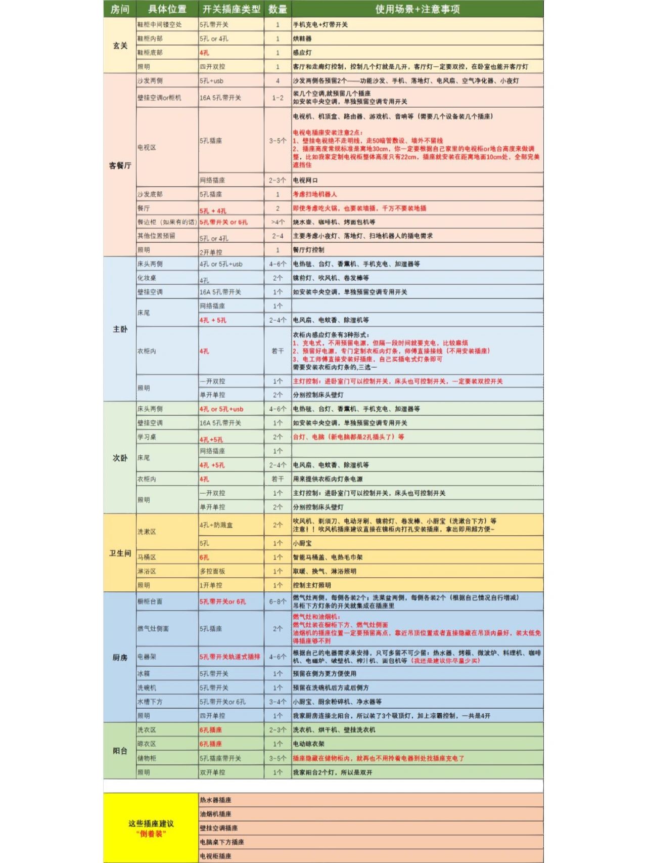 辣辣我根据自己的2次装修经验,总结了如下5星级⭐插座安装心🉐: