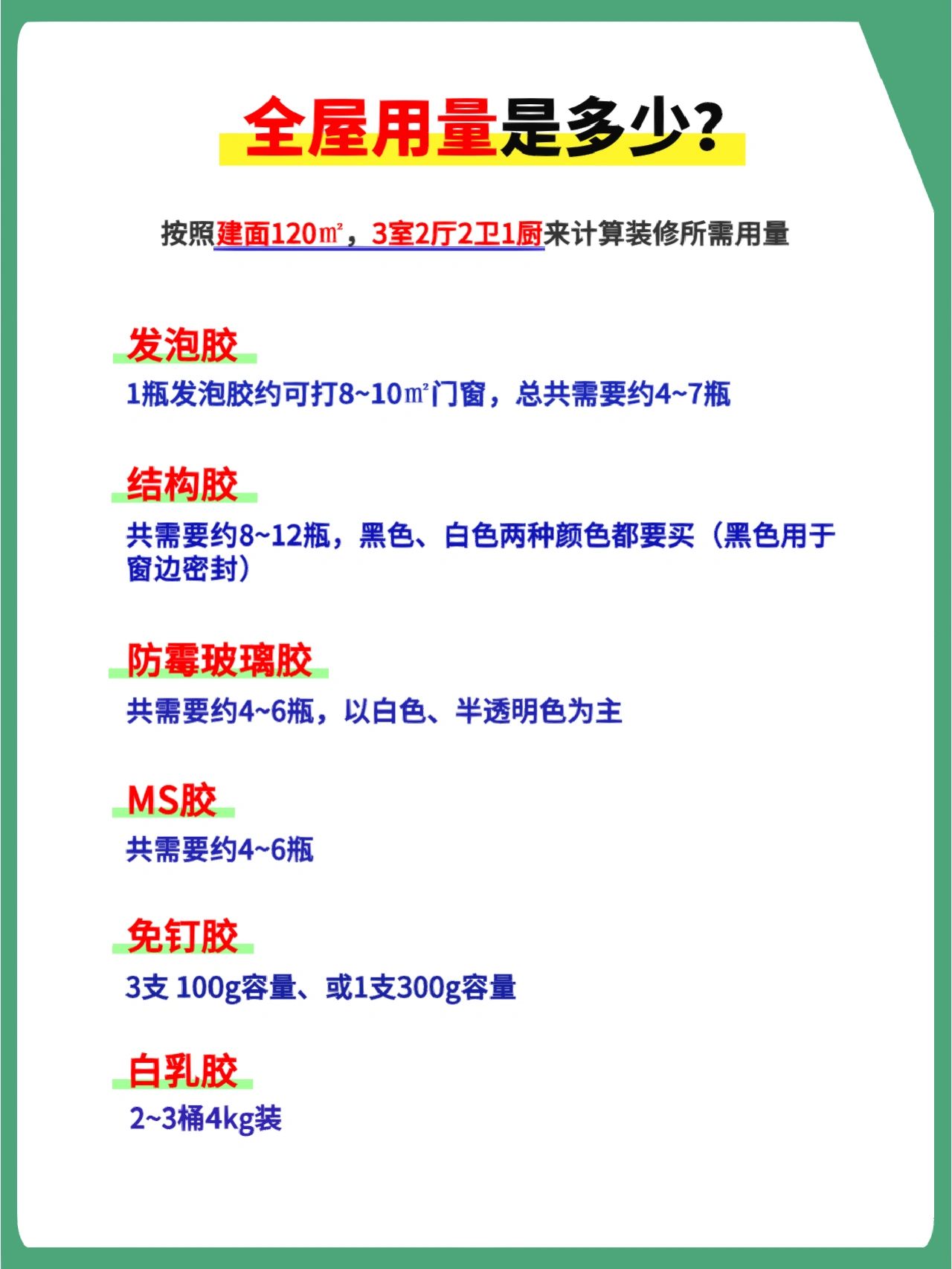那玻璃胶怎么选,有哪些分类,每种品类该准备多少用量,什么时间开始准备,以及有哪些玻璃胶品牌推荐?我全都总结在了上图,宝子们随意自取,千万要在使用节点之前购买,以免耽误工期哦~