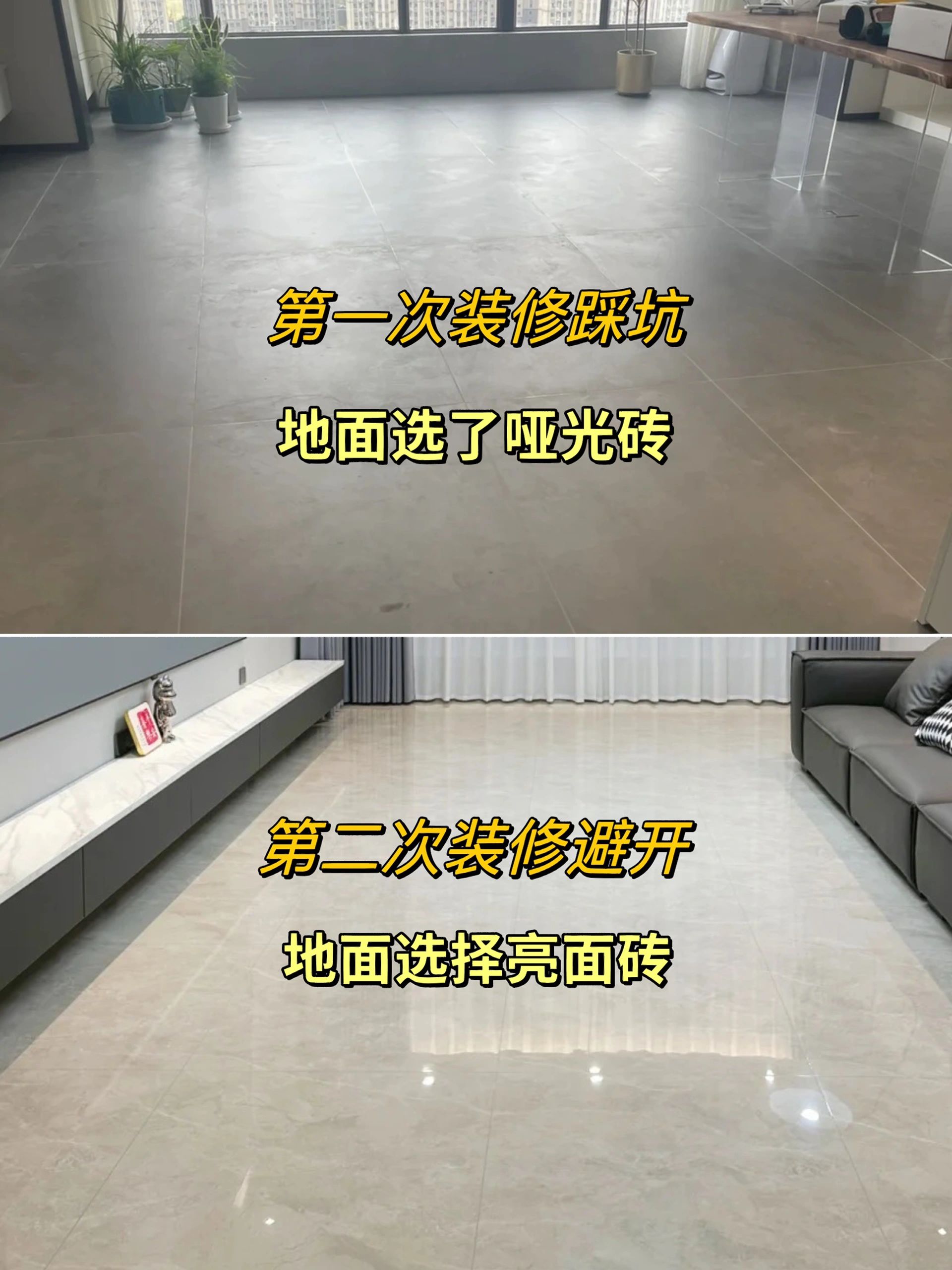 地面选了哑光砖,喜欢哑光效果的可以买柔光砖,哑光砖容易藏污纳垢,容易留脚印