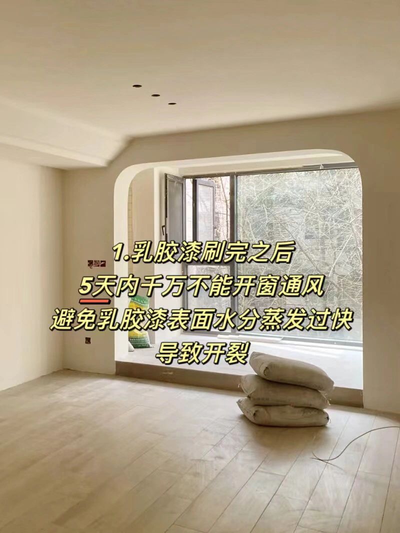 1.刷完乳胶漆后关闭门窗5天自然阴干