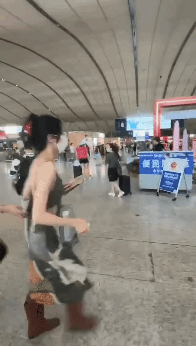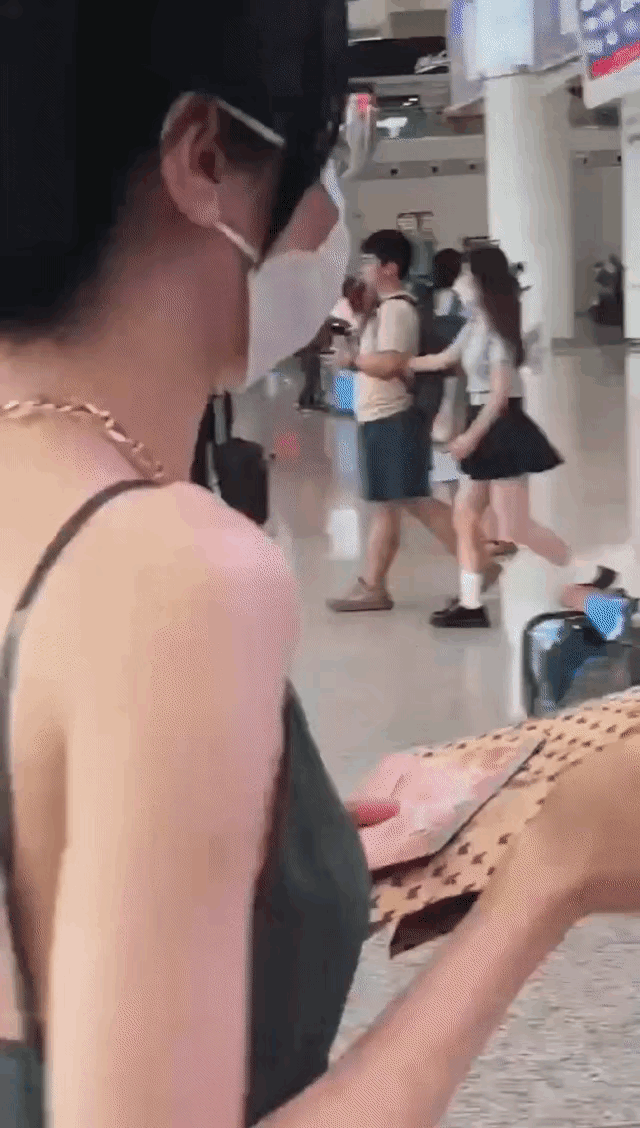 张天爱跟素人合影,胯真的好宽,大宅院似的