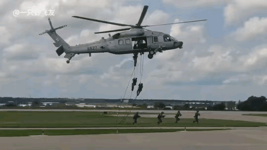 绳子不值钱,这是自家场地,可以回收。其实我觉得直20落地。让士兵跳下去会更加节约时间