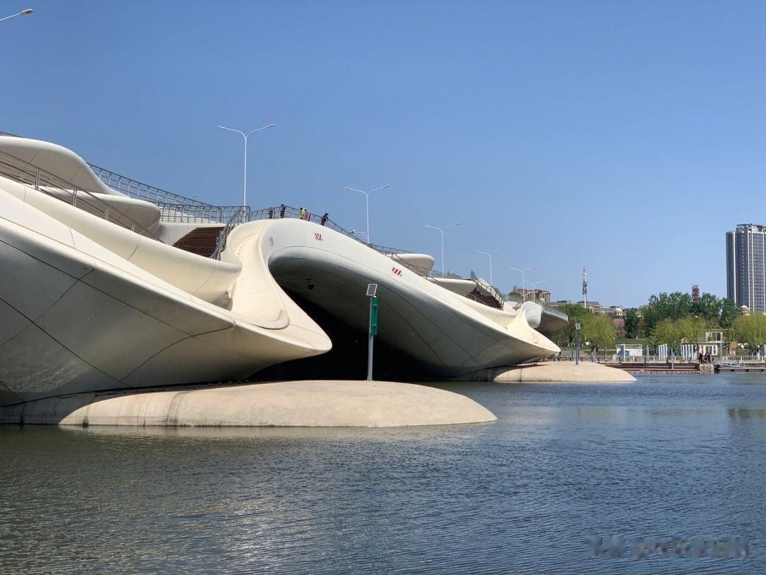 北运河最美的桥 千荷泄露,第一次听到这个名字,很难想象它竟然是一座桥的名字。 这是一座现代设计风格的桥梁,通体为浪漫圣洁的白色,蜿蜒曲折的桥洞和桥梁,犹如层层叠叠的丝带,又像它的名字一样似是荷叶上垂涎欲滴的露珠。