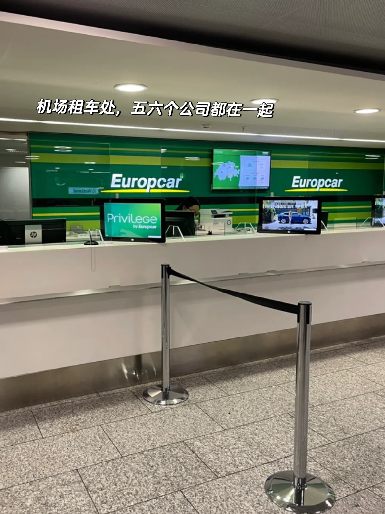 🚗落地苏黎世机场,跟着指示牌(图二)去租车,我们选择的公司是EuropCar,可以app线上提前订车,也可以现场订车,但可能车型不全。