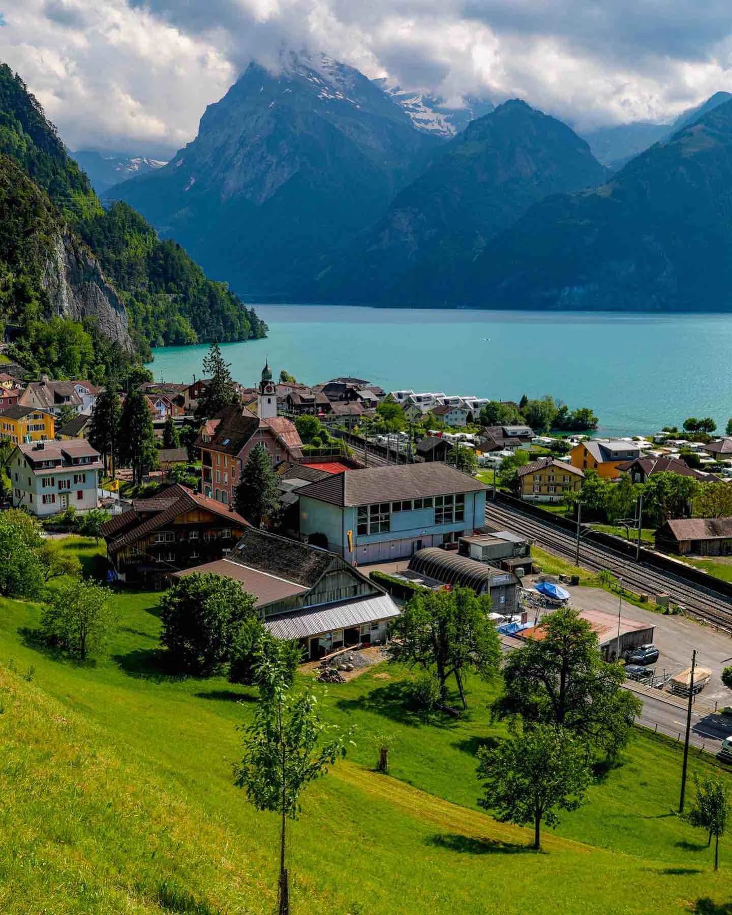 周围环绕着壮丽的山脉🏔️、冰川和湖泊,如朗根湖和布里恩茨湖。