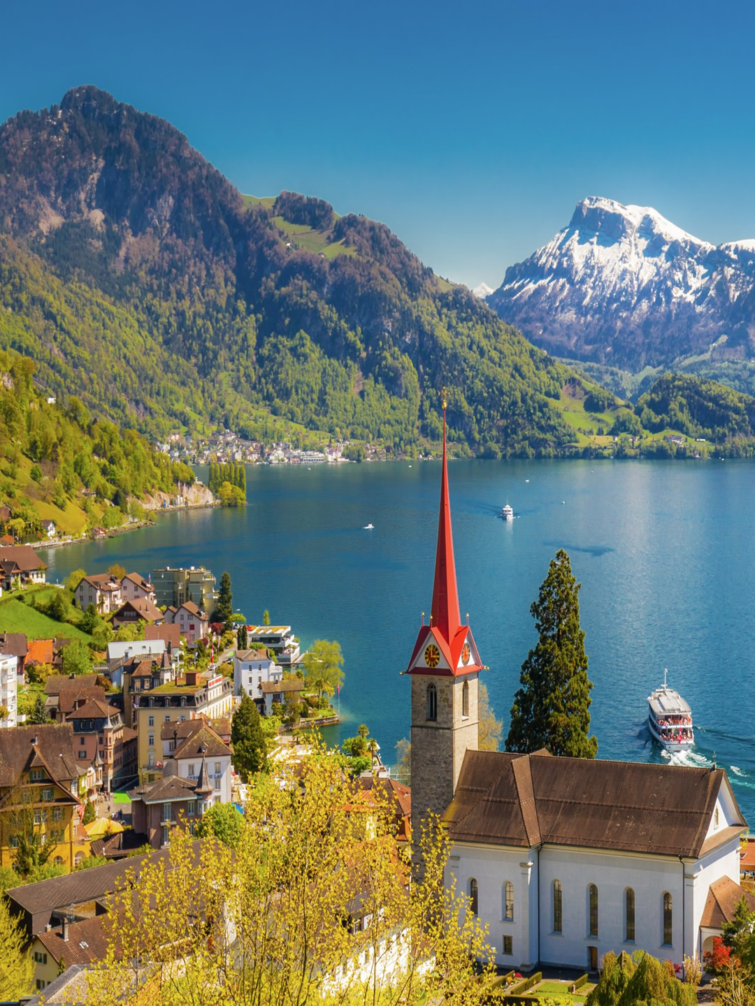 ✔卢塞恩湖:乘船游览美景是许多游客钟爱的游玩方式,还可以欣赏两岸的吧老城风光