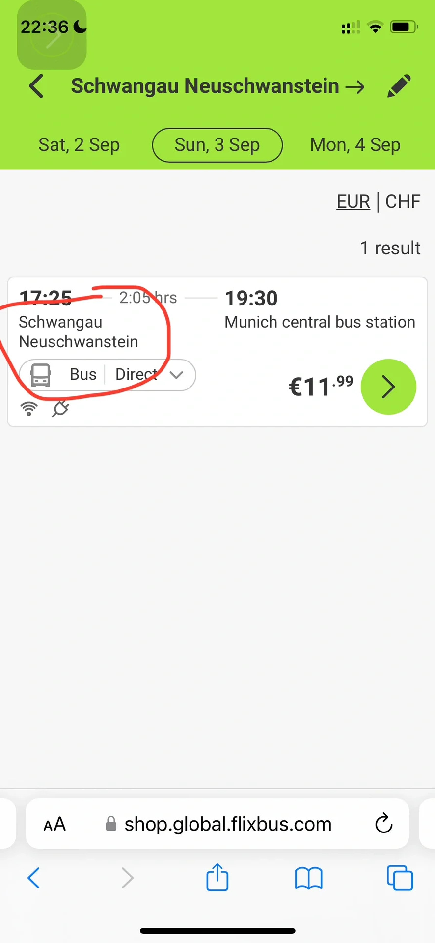 慕尼黑中心车站<•>福森小镇,途径天鹅堡