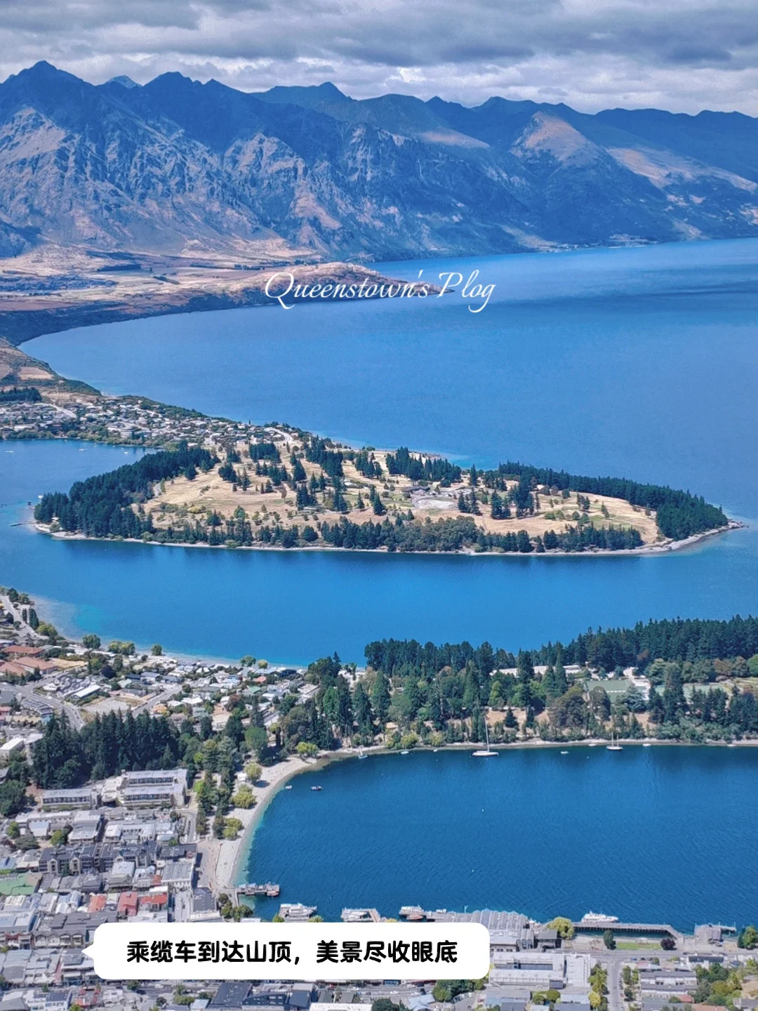 山顶有一圈观景平台可以看到不同角度的瓦卡蒂普湖和皇后镇,很容易出片。