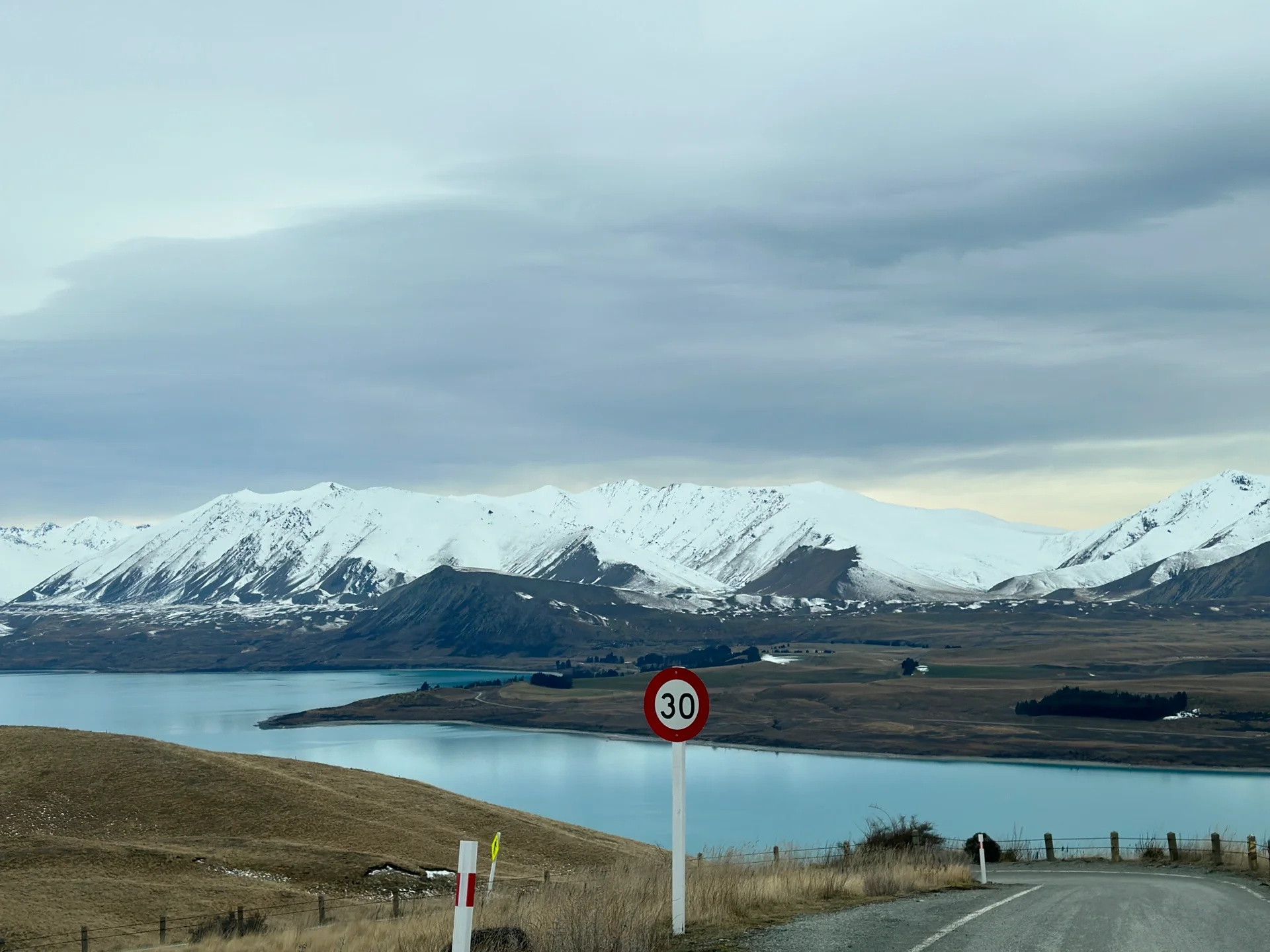12am🚗Astro Café—库克山(约1h20min)这一路上会经过Lake Pukaki,就是一路📷一路开,由于我们开错路了,所以耽误了一点时间。