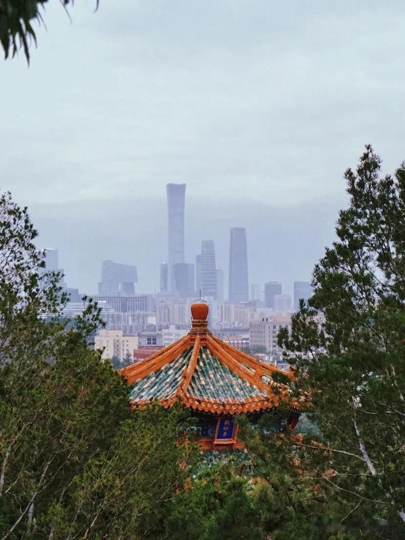 #来我家乡玩一天# 去完故宫,来景山公园。 景山公园,北京绝对的中轴线景观。可眺望故宫,是皇家后花园,是北京城中心点,采用了中国亭台园林最精妙的布置手法。如此多的标签,怎能不来? 景山公园给我的感觉是,皇气十足。山脊上的亭子样式各异,串联在东西走向的动线上。暑期假日人头攒动,大家都在找寻观望故宫的最佳视角。 山顶的最高点正是北京城的中心点,向下望景山前街的对面就是故宫博物院,向西望是绿树红墙的北海,向东还能眺望央视大裤衩。向北望则是公园内的寿皇殿。寿皇殿是皇帝祭祖之所,殿阁宏大,字碑肃然。