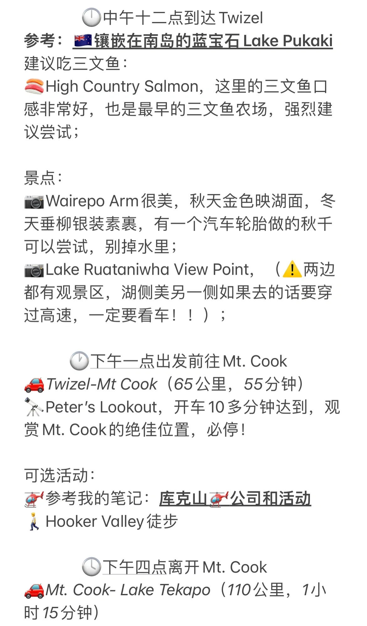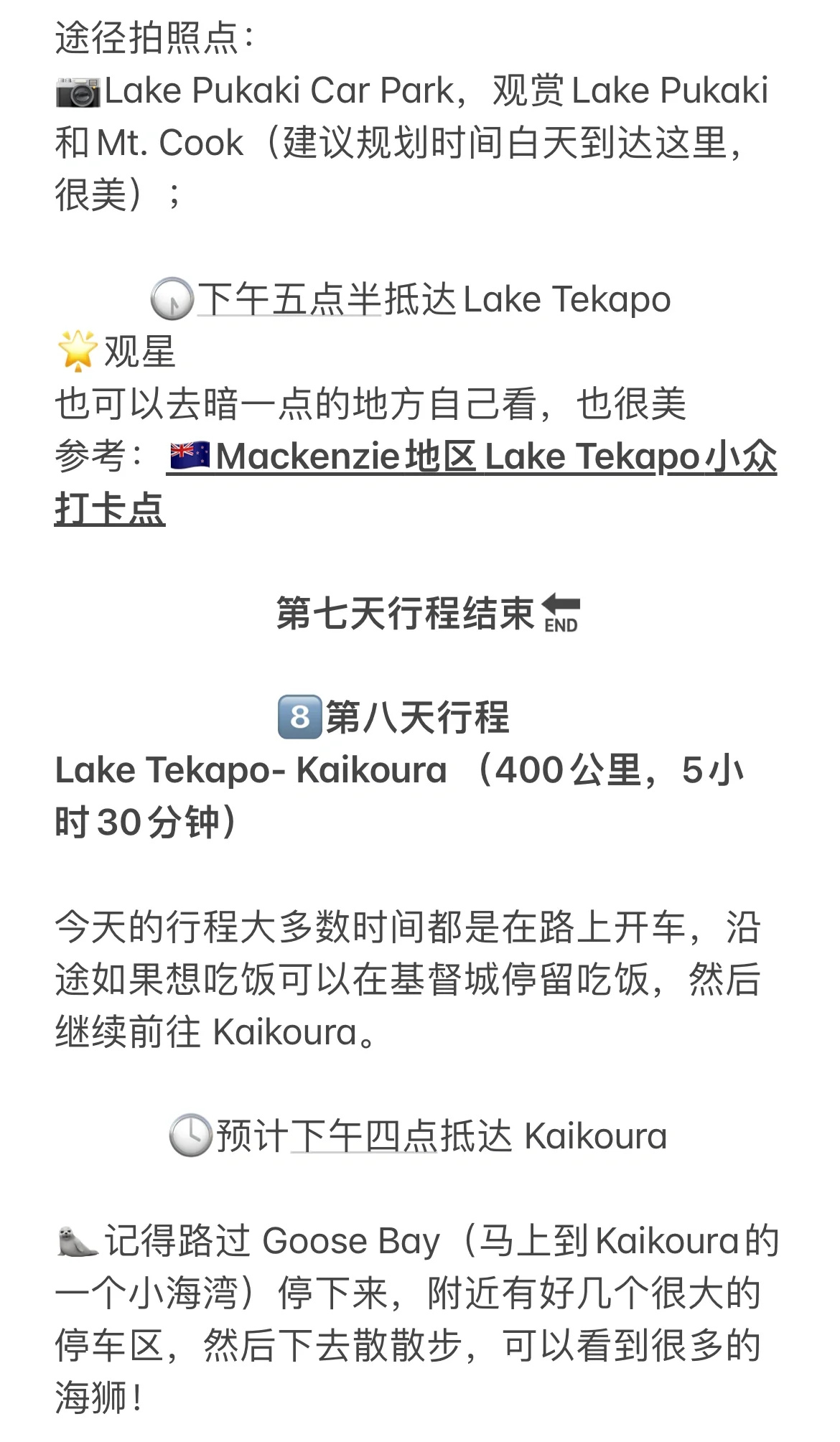 🔔此行程可以调整为11天,即Twizel多住一天,Kaikoura多住一天,取决于你的时间安排和精力。