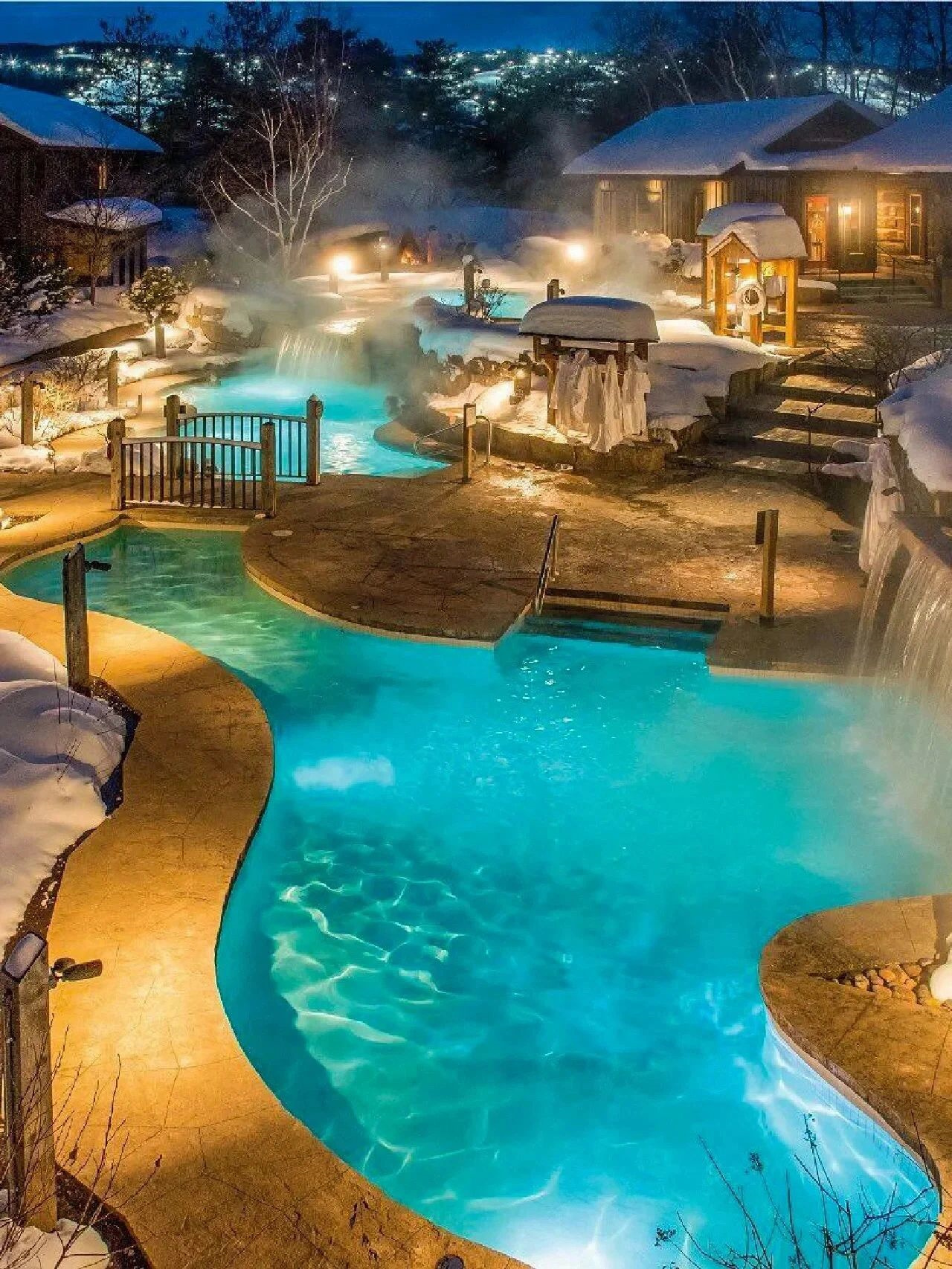 🔹北美最大的温泉水疗中心,大大小小的冷水热水室外泳池。