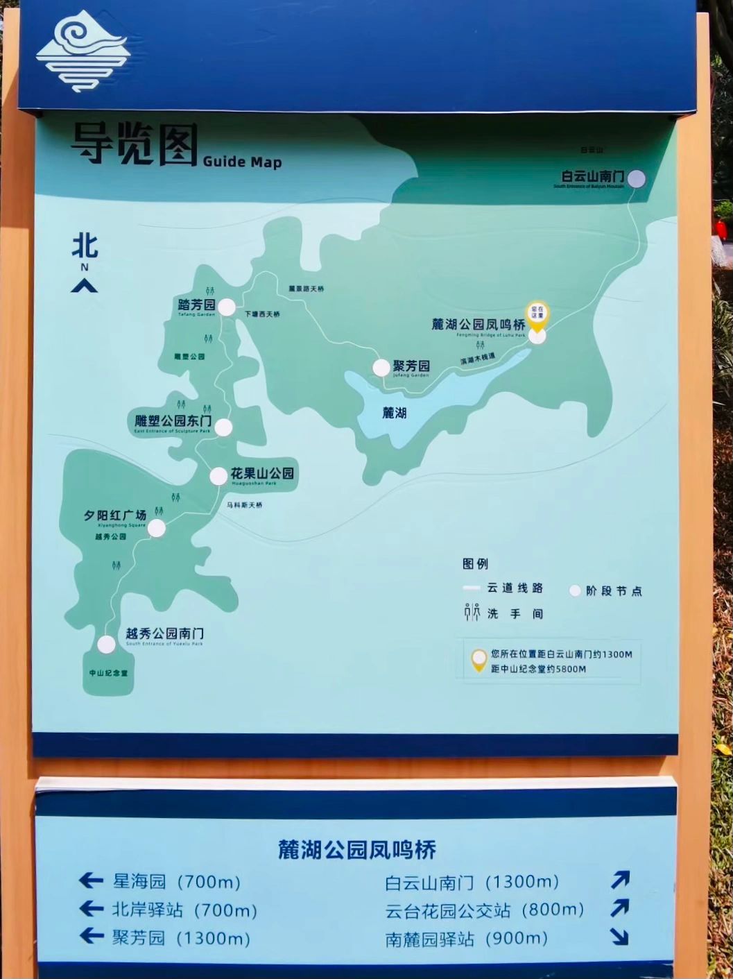 纪念堂C口→越秀公园南门→夕阳红广场→花果山公园→雕塑公园东门→踏芳园→聚芳园→麓湖公园凤鸣桥→白云山南门