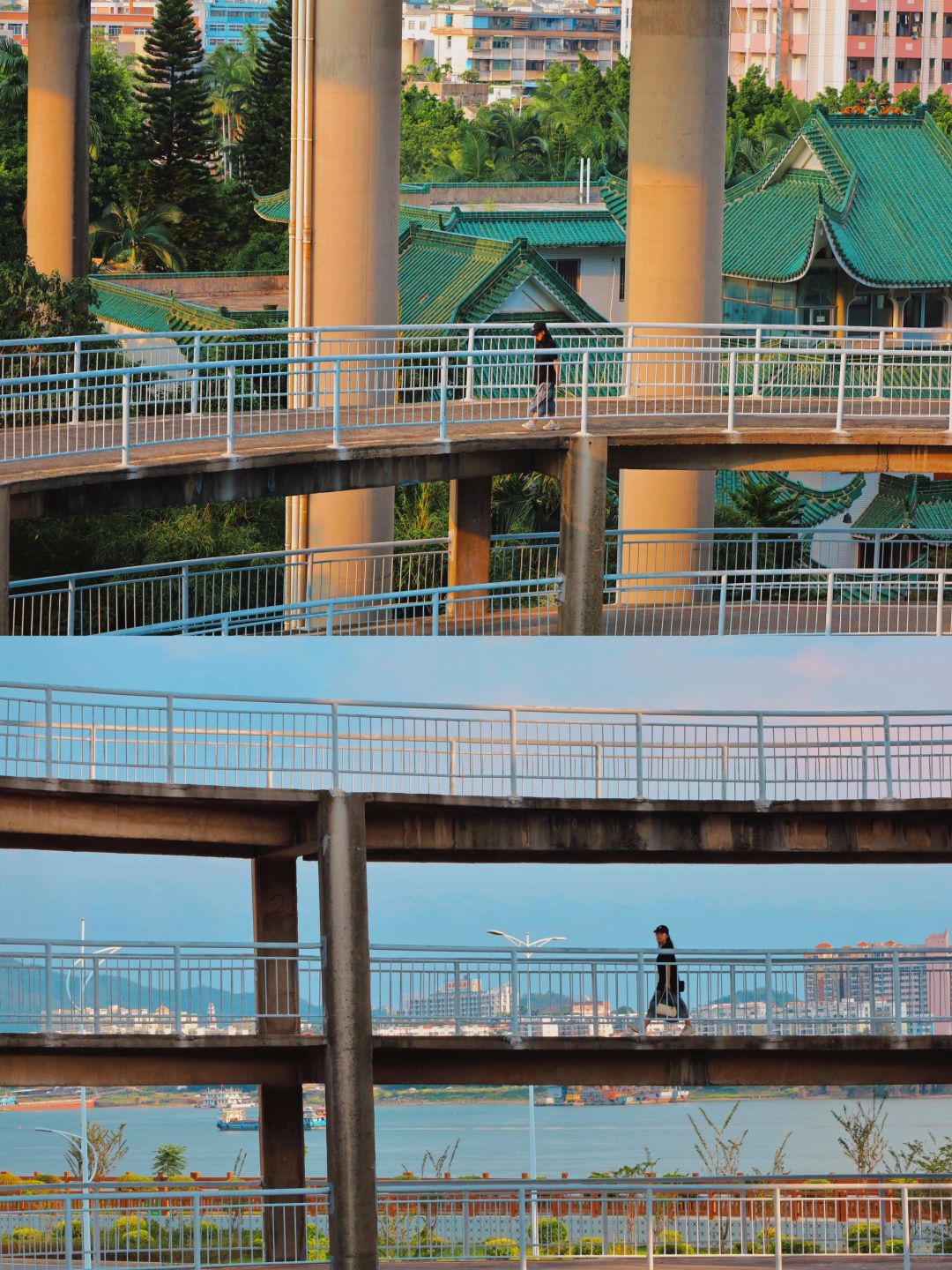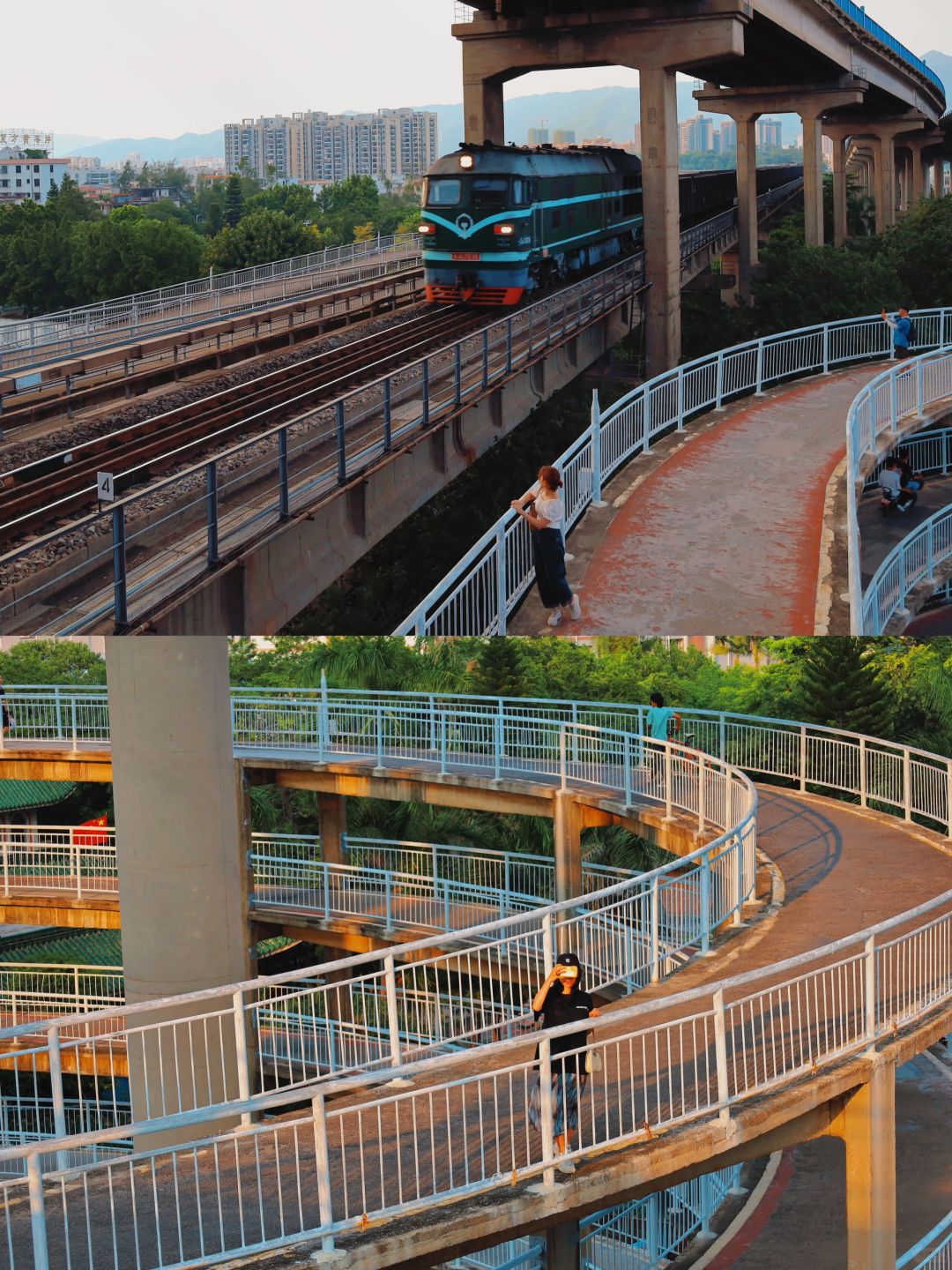 📍「西江大桥」:一座具历史、设计于一身的大桥,多层的旋转构造,随手一拍都是大片!旁边还有火车经过,很有感觉~