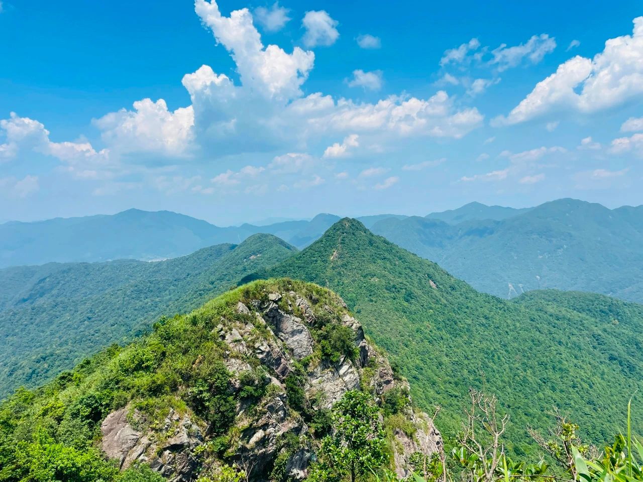 12:00 到达山脊,视线豁然开朗,巍峨险峻的五指山突然出现在眼前,此处当是休息、拍照、分享午餐的好地方