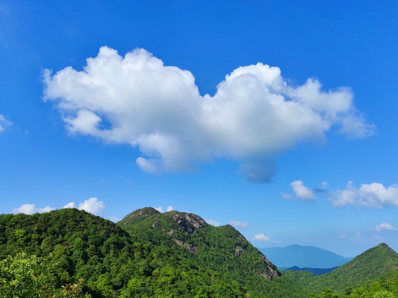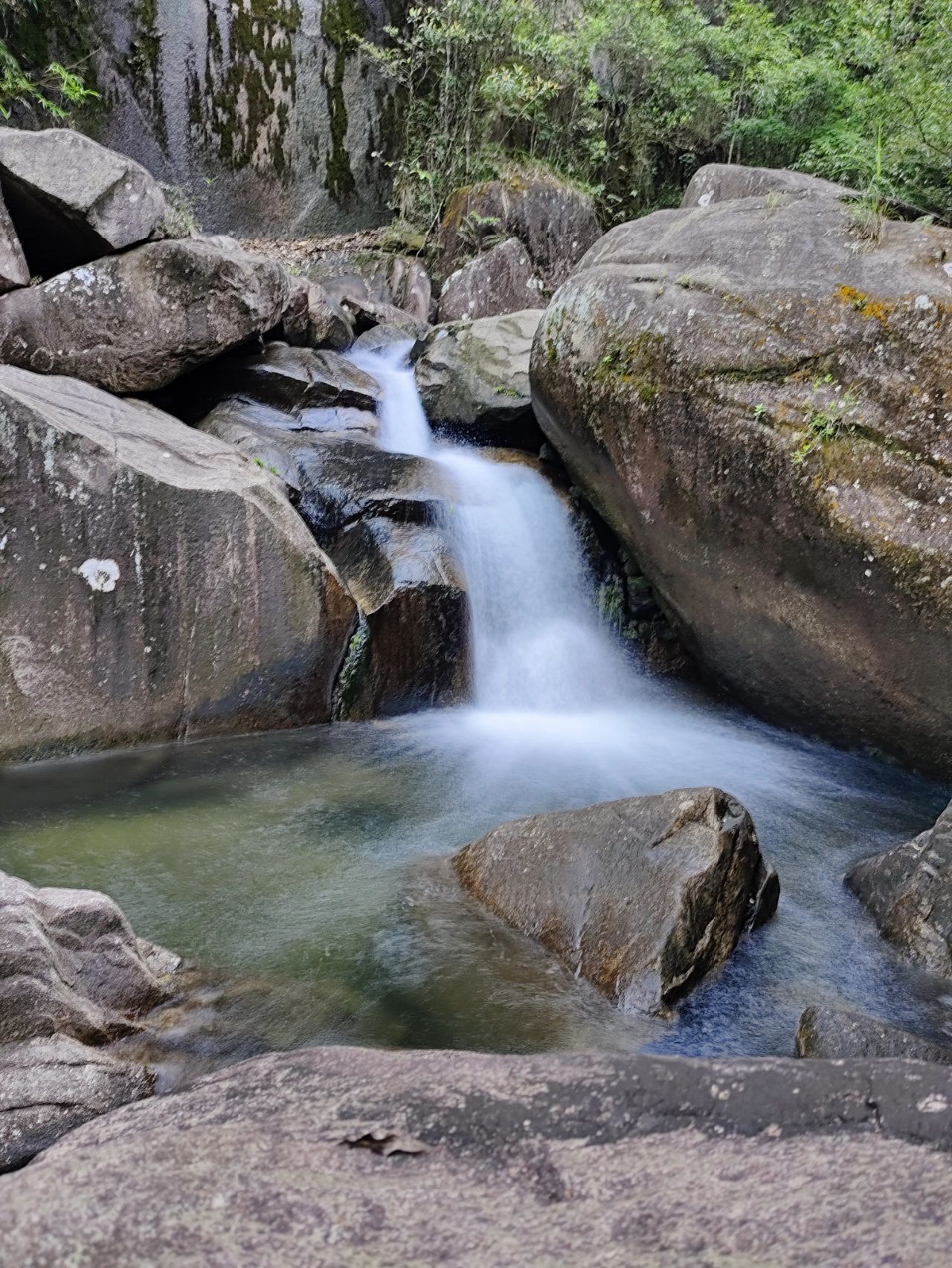 线路:岭头村-五指山二峰观光亭-四峰-南山瀑布 约14km Day1:岭头村-五指山二峰(不上老虎头) 下午两点多岭头出发,怕晒不上老虎头,穿越线上去旁边就是水流,有小潭子,在到景区石板路前几乎全程树荫。 二峰观光亭视野开阔,天气好很无敌,刚好看个完美的日落 日落方向可以看到远处的风电机在转着(应该是清远那边的) 暖黄色的天空,又刚好是航线,可以看到飞机剪影从画面慢慢穿过。 因为没有游客,扎营位置随意选择,因为亭子没别的游客,我选择了在亭子一个角边挂吊床。 (到晚上发现是个错误决定,很大风。不过有个好处就是睁开眼就能看到外面的环境) Day2:五指山二峰-四峰-南山瀑布 因为晚上十二点左右开始起雾,八点多才开始散,所以没有星空,早上也没能看到日出。 八点多出发下山,石板台阶路一直到四峰,之后是石头土径。 基本也是选着水流往下走,树林里也晒不到,还可以泡潭子或者洗把脸,冻瓶可乐,很是舒服。 中午十二点到流溪河森林公园,回程。 没有看到日出,云海,星空,下一次待续。