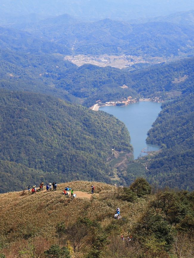热身运动后出发,中午可以在山脊上找一片风景优美的空地路餐,相互分享带来的美食。休整后继续出发,大概下午两点到达今天的制高点。