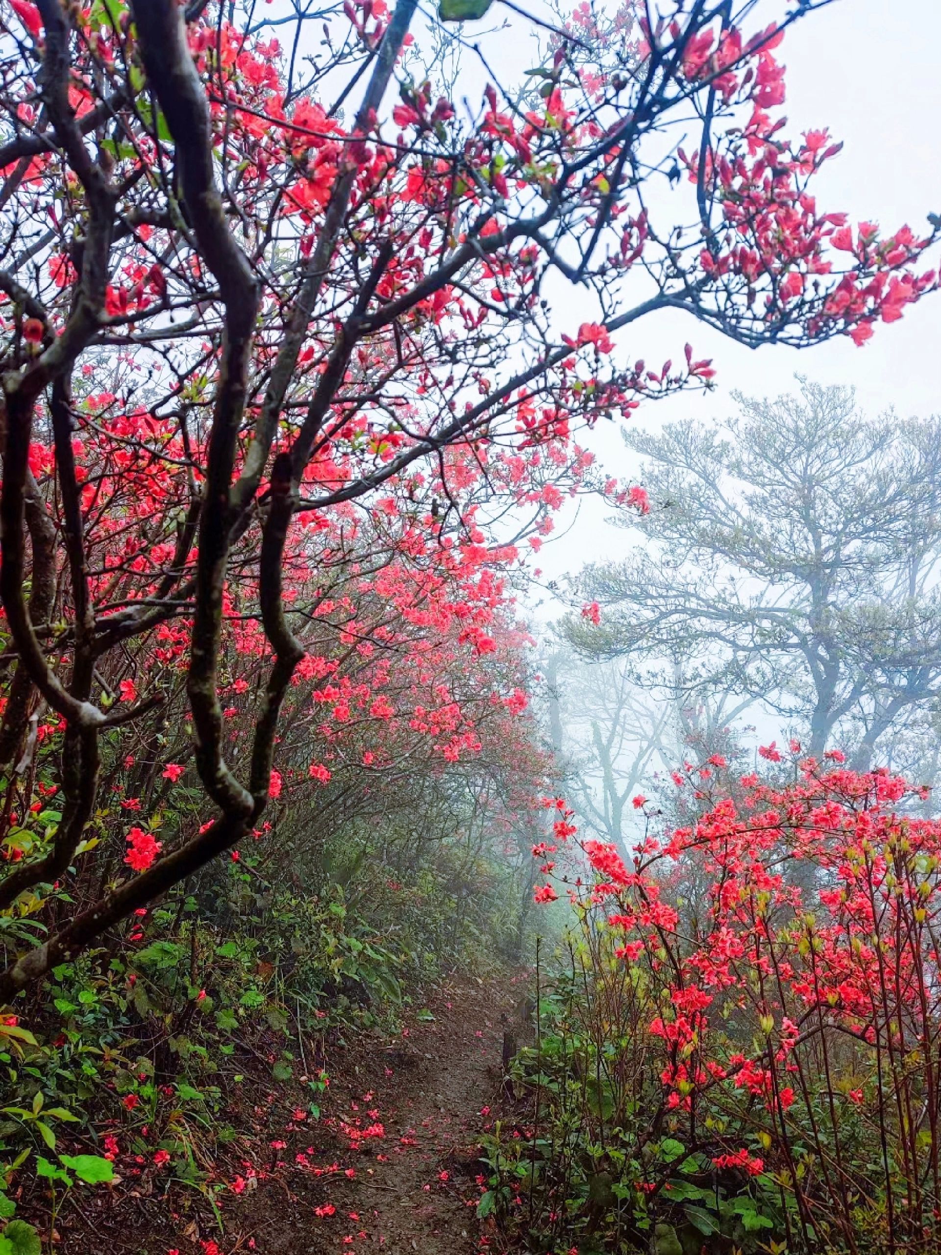 每年春天,海拔900米以上全部是杜鹃花丛点缀整个山野,似通红的蜡烛,故名“通天蜡烛”。