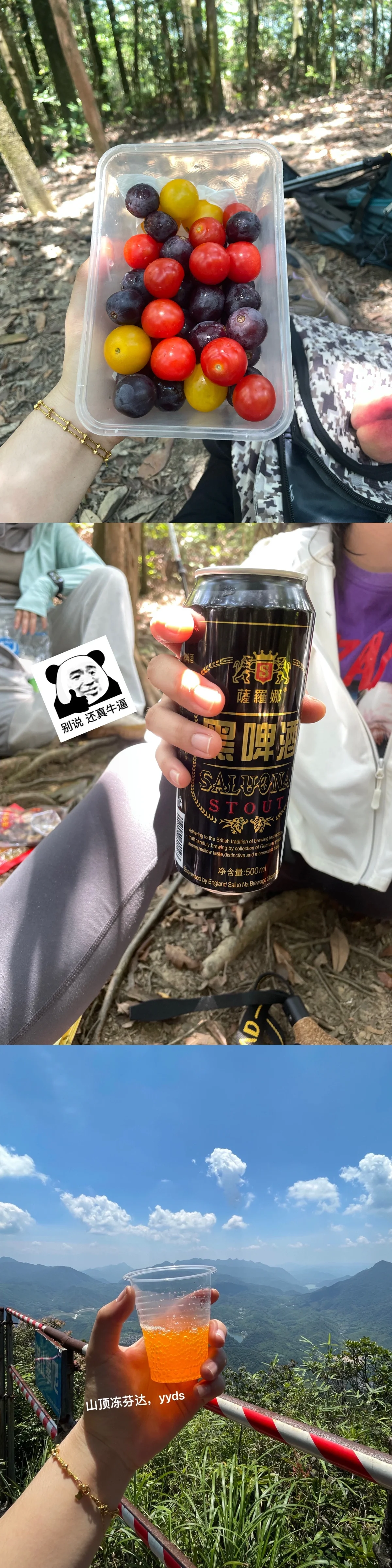 走的黄茶园环线,大概13公里左右吧,溪头村上山,下溪村出来。 上山五公里左右,下山八公里左右。 今天平均温度都37摄氏度,太阳异常毒辣,开局爬个太阳直晒的急坡,马上头晕目眩,恶心想吐,同行小伙伴非常给力,吃了神药十滴水(贼拉苦),帮我背水,扇风,终于才缓过来。 上山觉得很费股四,没想到下山才是噩梦,简直膝盖粉粹机。全程都是又急又陡的斜坡,连滚带爬地下去了,又来到了看不到尽头的水泥台阶,全程腿抖膝盖痛,而且下山真的太多蚊子啦,人均头上养一群 总的来说,环线真的好累啊!