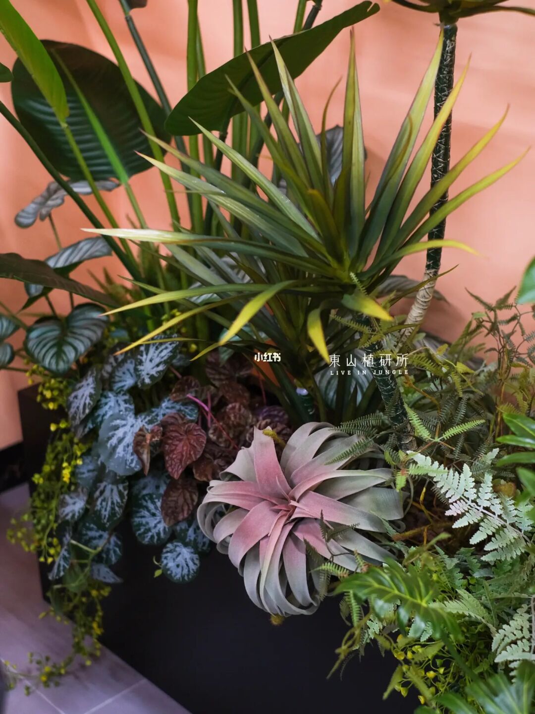 束文竹、千年木等细长的植物可以填补垂直空间,增强整体设计的视觉层次和平衡感。