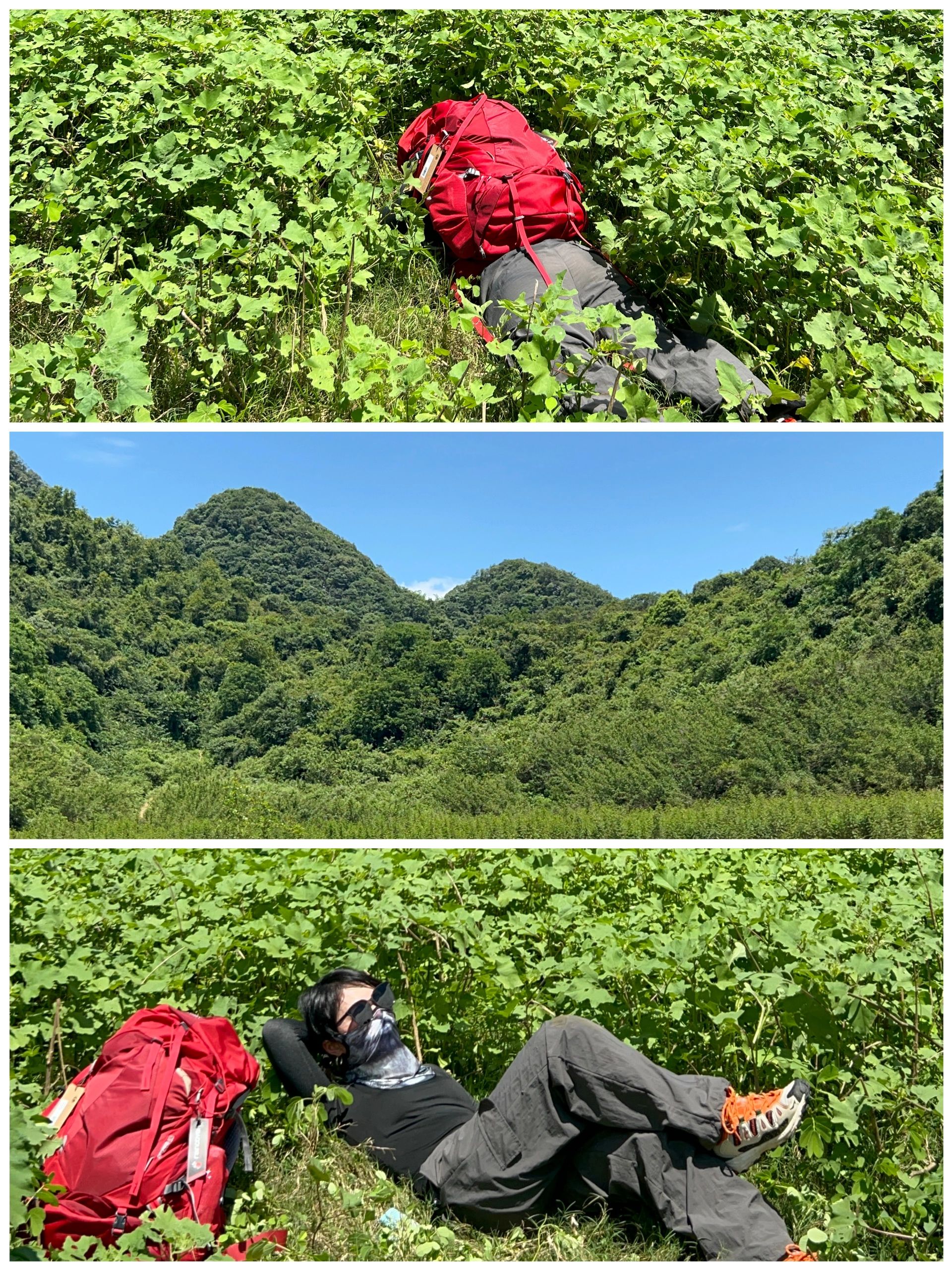 有段芦苇丛略略窝火,需要低腰走一段时间,在这儿还被几只马蜂蛰了,痛稀了!(消毒擦药膏,后面会特别痒,不能抓)