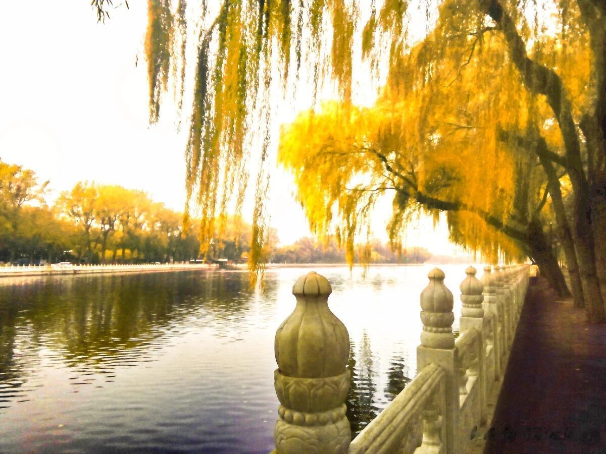 这个时节的后海最是惬意,阳光温柔,天气晴朗,气候宜人。清风拂面,既有秋天的舒适又有夏天的热闹,让人沉醉其中。 秋天的云朵,还是那么好看,一朵朵像棉花糖一样。漫步在后海的小路上,两旁的柳树轻轻摇曳,仿佛在诉说这个季节的故事。微风拂过,带着湖水的清新气息,让人陶醉在这惬意,宁静,美好的时光里。 #镜头里的秋天有多美#