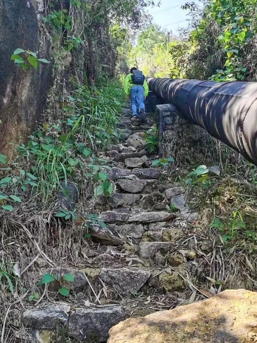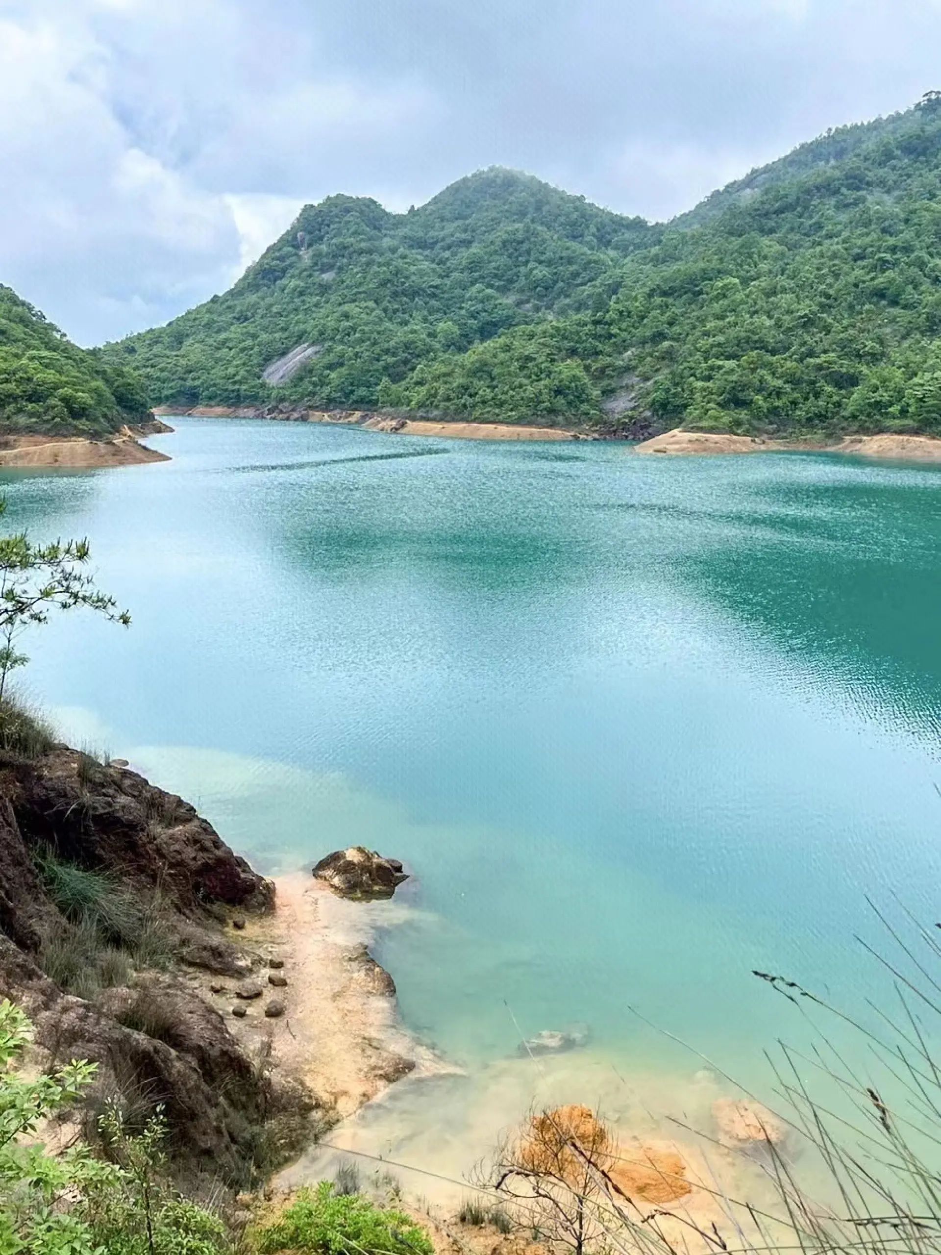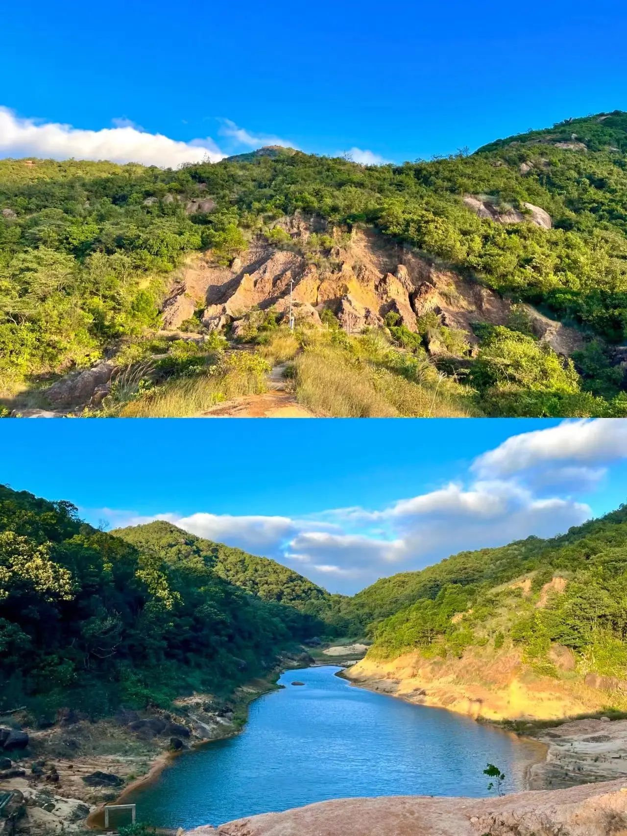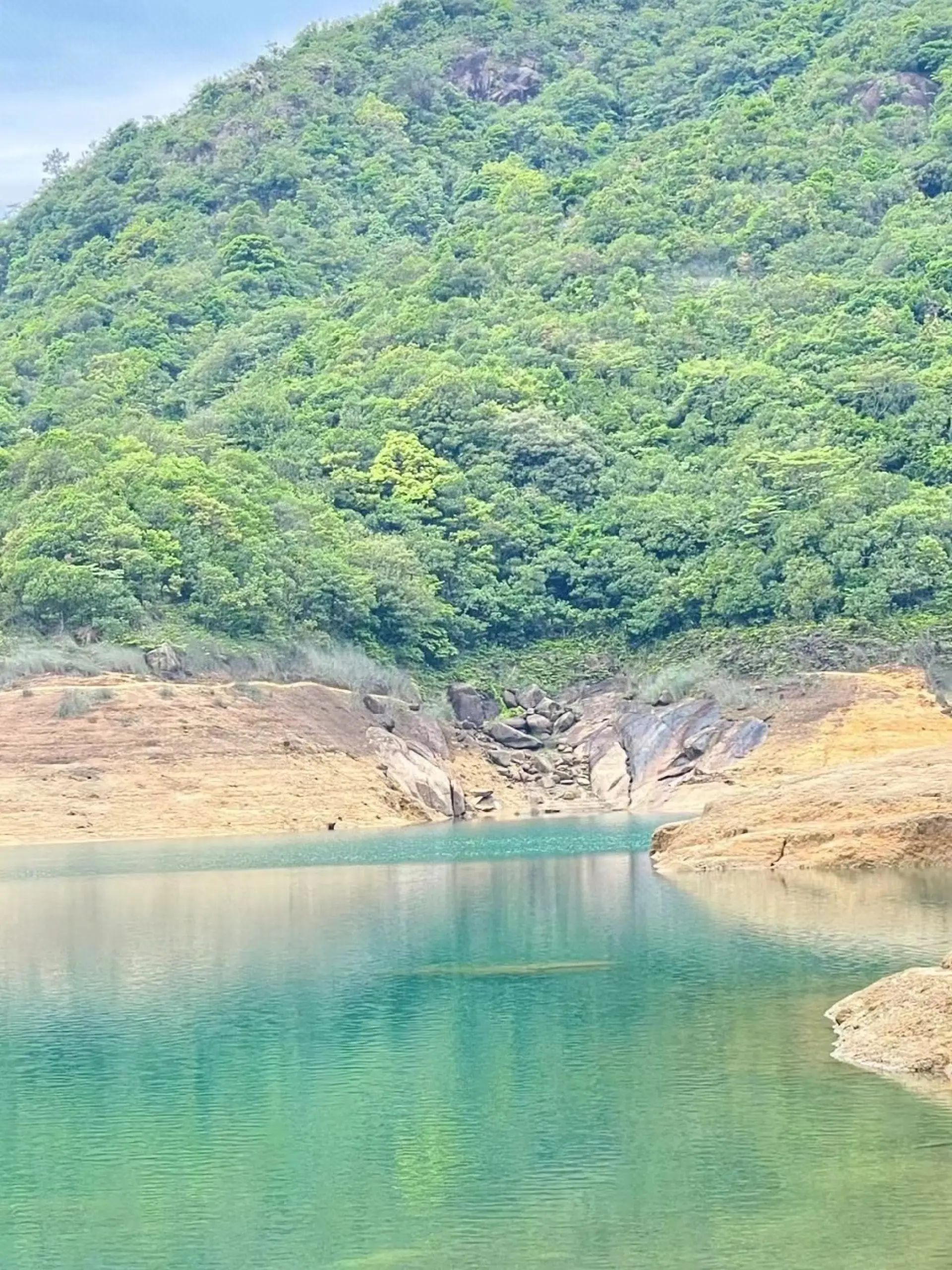 从七境村出发,沿着水管走到大猪兜水库。这个水库真的太美了,像一颗绿宝石镶嵌在山间。