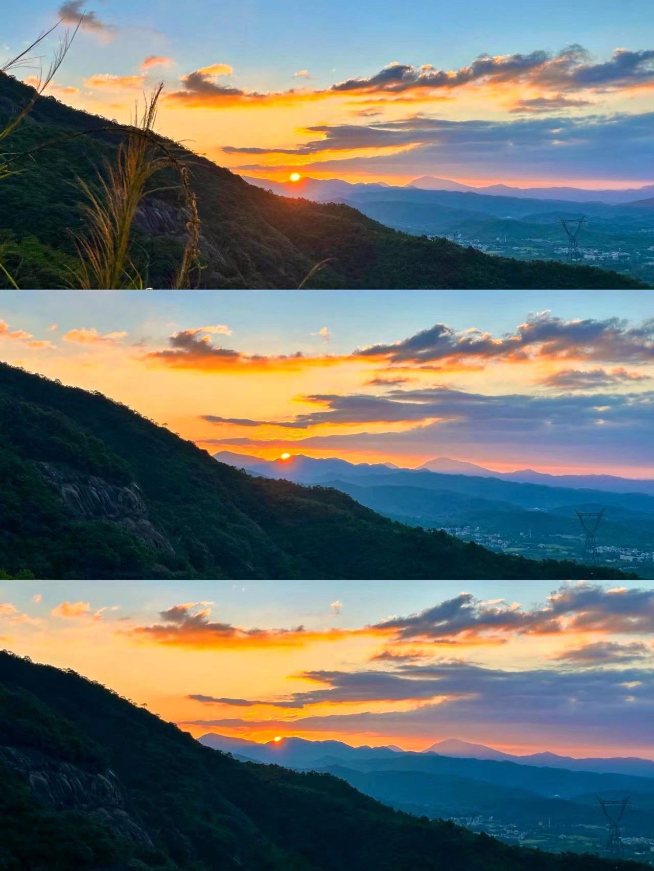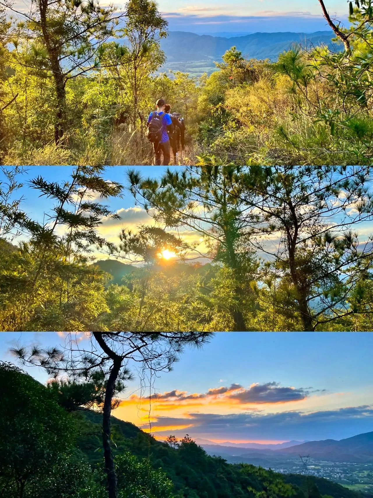 从山顶另一个角度看过去,可以看到水牛卧伏和远处的风景。这里可以拍出很美的日落和云海效果