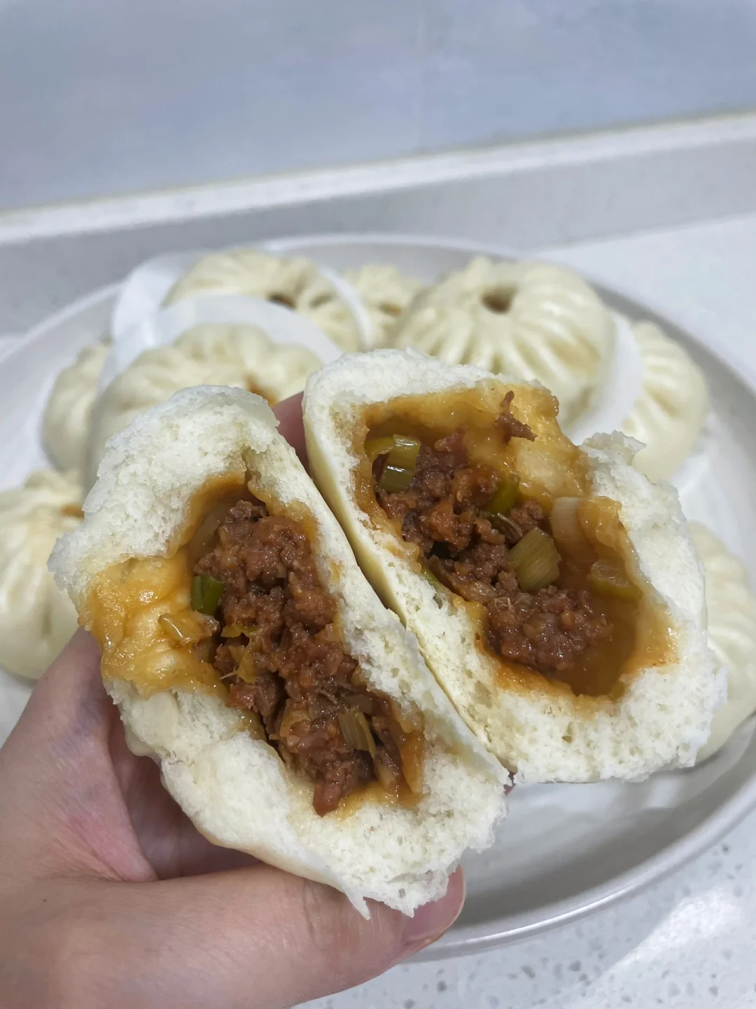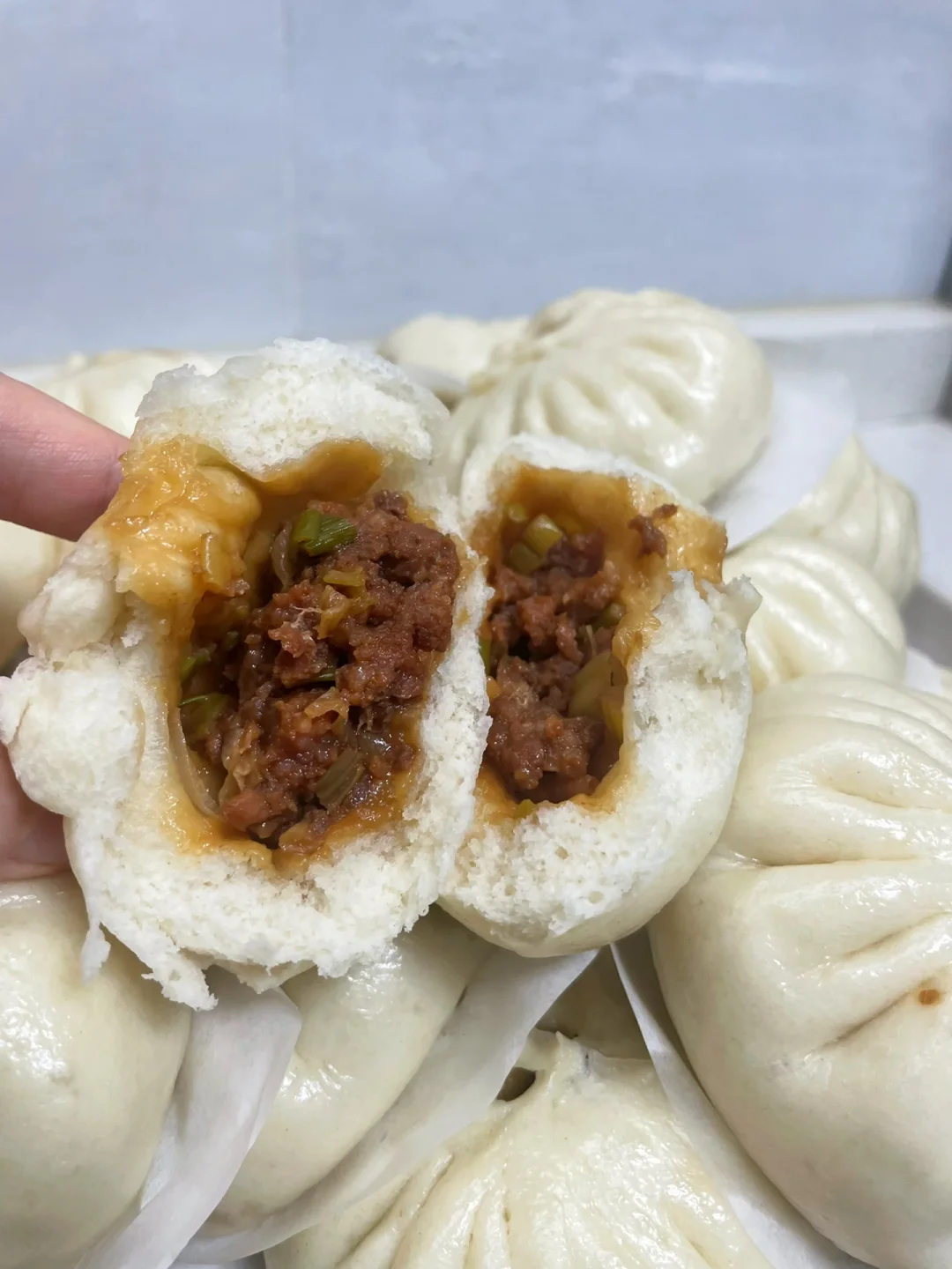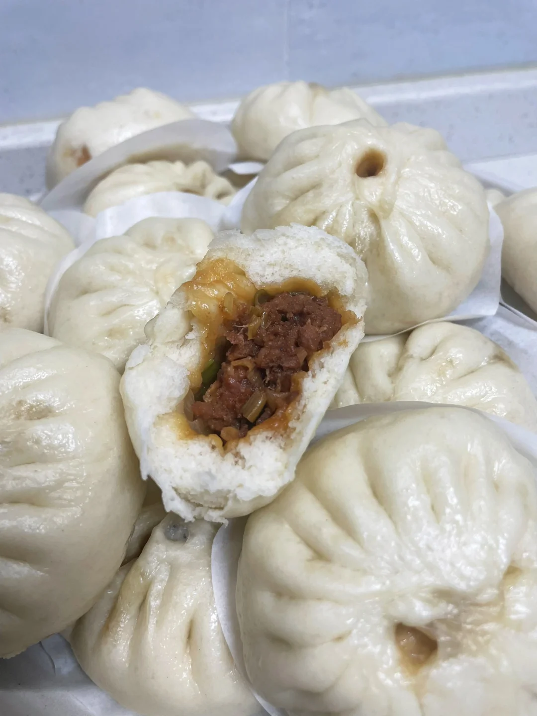 谁懂吃包子的快乐,面皮暄软,酱香浓郁,大葱解腻~