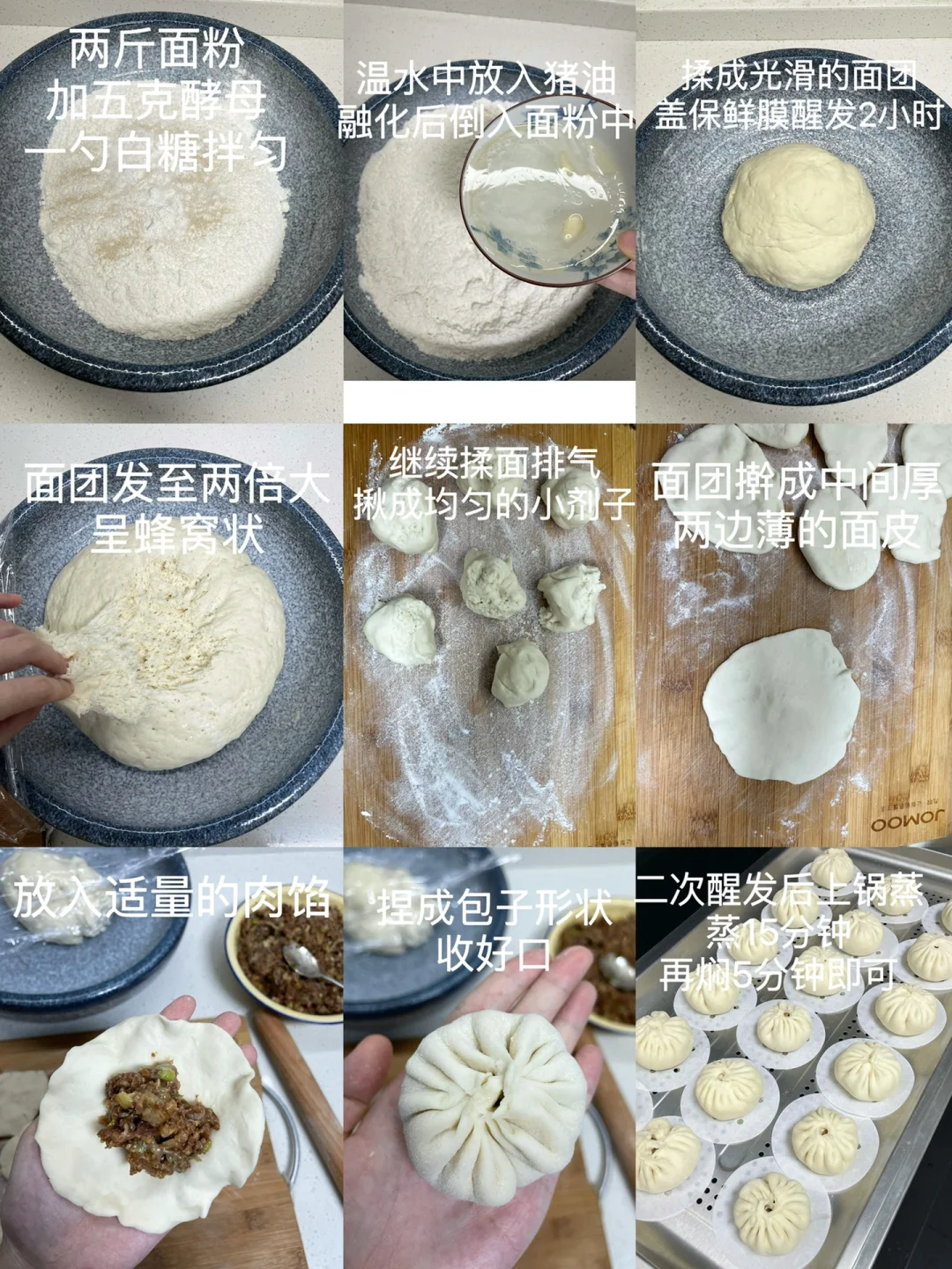 3⃣️:包好后再次醒发,待面团轻飘飘的便上锅蒸,蒸15分钟后再焖5分钟即可