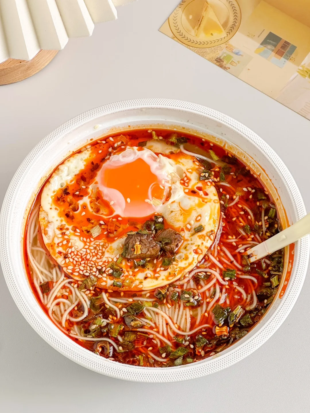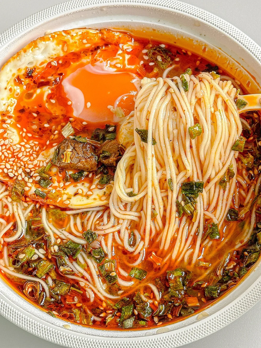 免洗免煮的兰州牛肉面谁能不爱啊!! 面饼还是非油炸的!!汤底浓郁! 开水冲泡几分钟就能得到一碗比店里还好吃的兰州牛肉面!?里面还有几块厚牛肉!! 这没比店里薄薄的牛肉片划算?? 在家五分钟就能吃到一碗!尊滴方便~