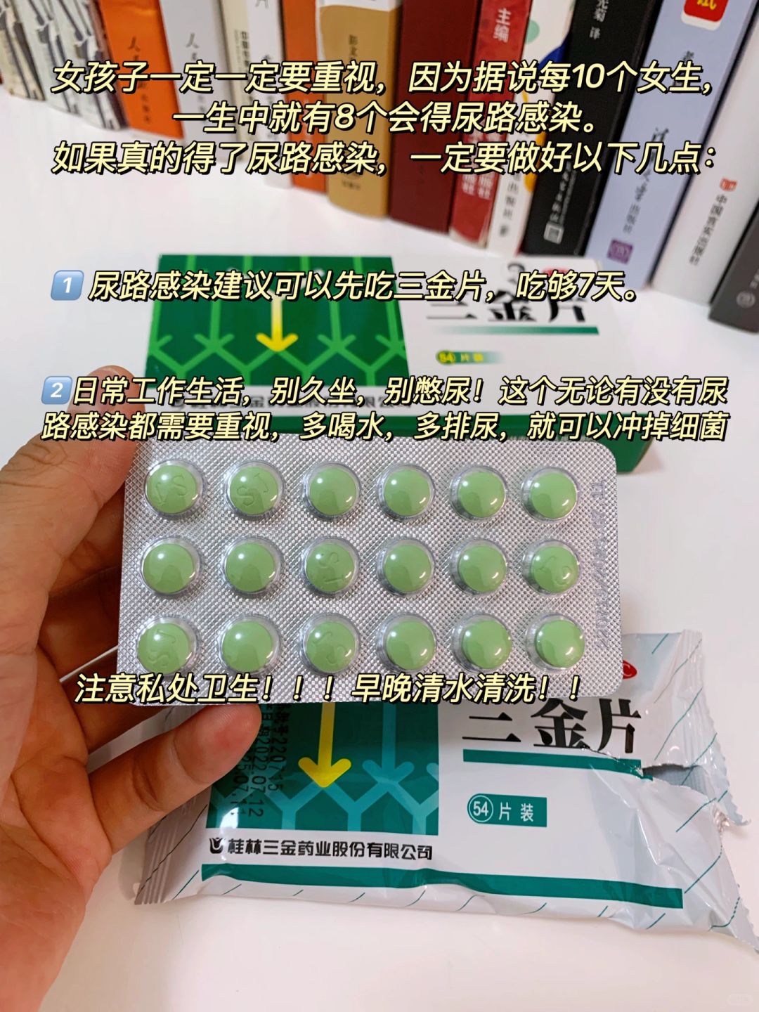 因工作损耗健康是最得不偿失的事。我有很多个朋友因工作不如意而导致甲状腺结节、乳腺结节,而我去年经常因工作而导致胃不太舒服,8月份还因为经常久坐憋尿,出现了频繁跑厕所,而且上厕所有刺痛感的症状,检查发现是尿路感染力,医生开了三金片,连续吃了7天感觉顺畅了很多。(在这里奉劝大家一定要重视尿路感染,千万别久坐、憋尿,多喝水别熬夜!我去看医生的时候,医生建议三金片要吃够7天,效果更巩固,尿路不适的症状比较不容易再反复!!)