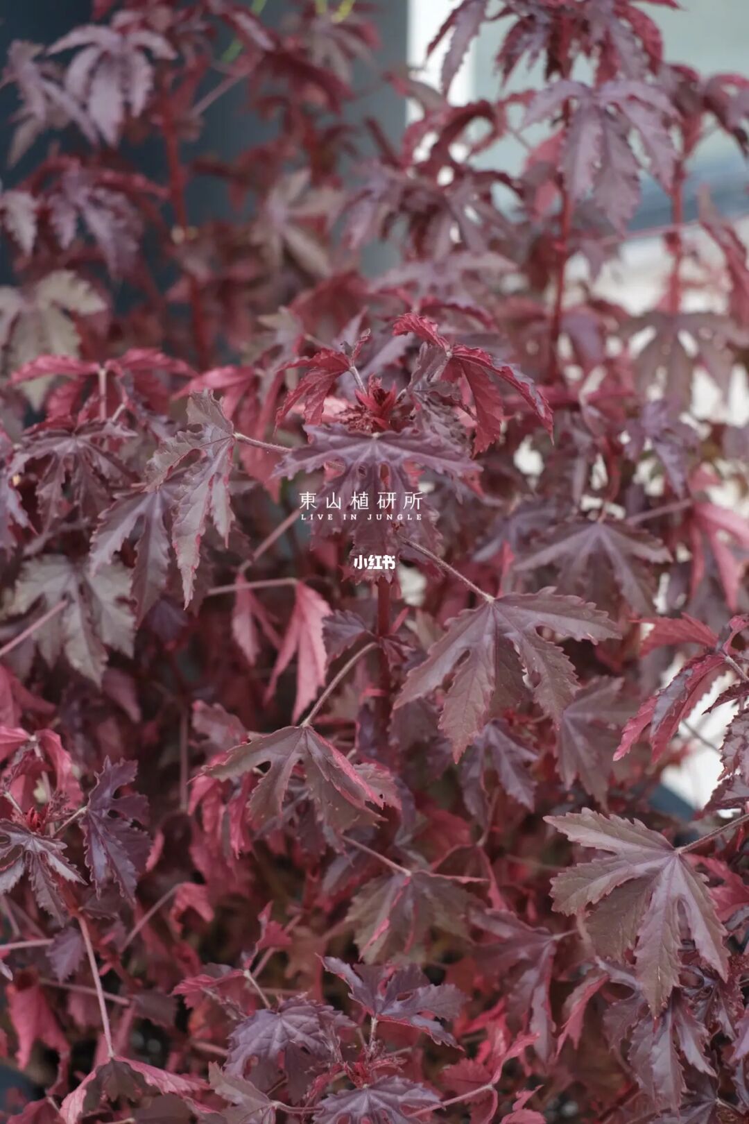枫叶芙蓉葵、红叶乌桕的红色叶片和柳叶星河、木绣球的绿色形成了鲜明对比,让人眼前一亮。